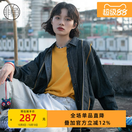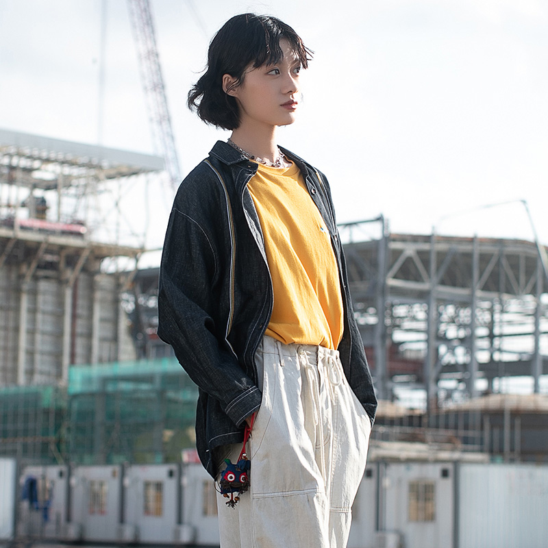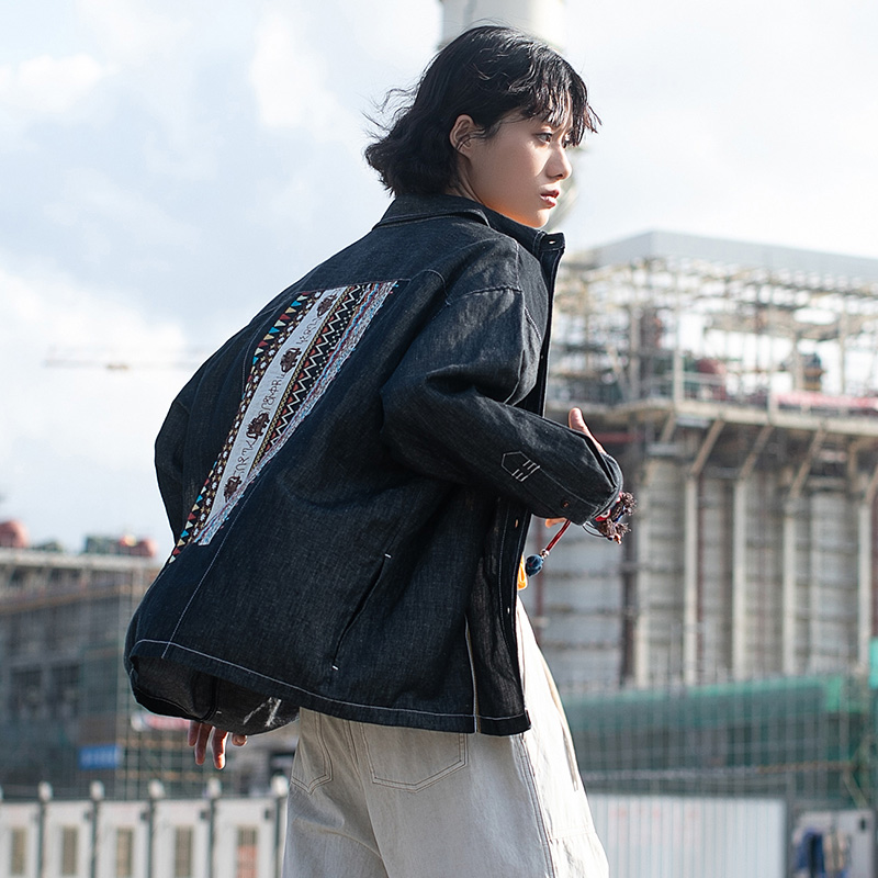非鱼棉麻衬衫春秋季宽松休闲上衣复古设计感贴布刺绣衬衫百搭外套