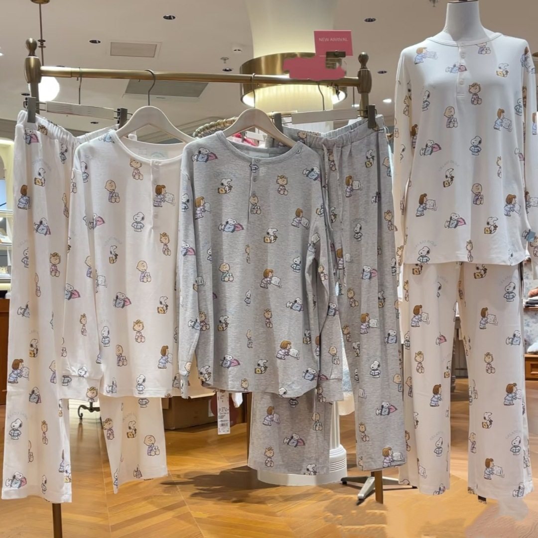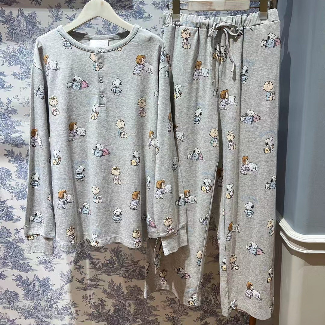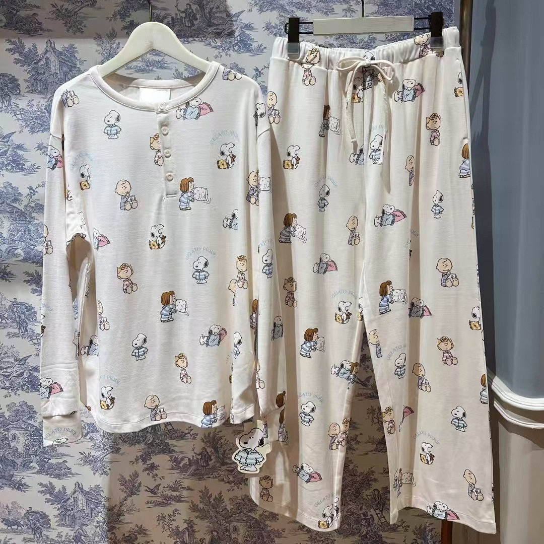 原单软绵绵冰淇淋满印新史努比卡通印花圆领长袖女士家居服套装