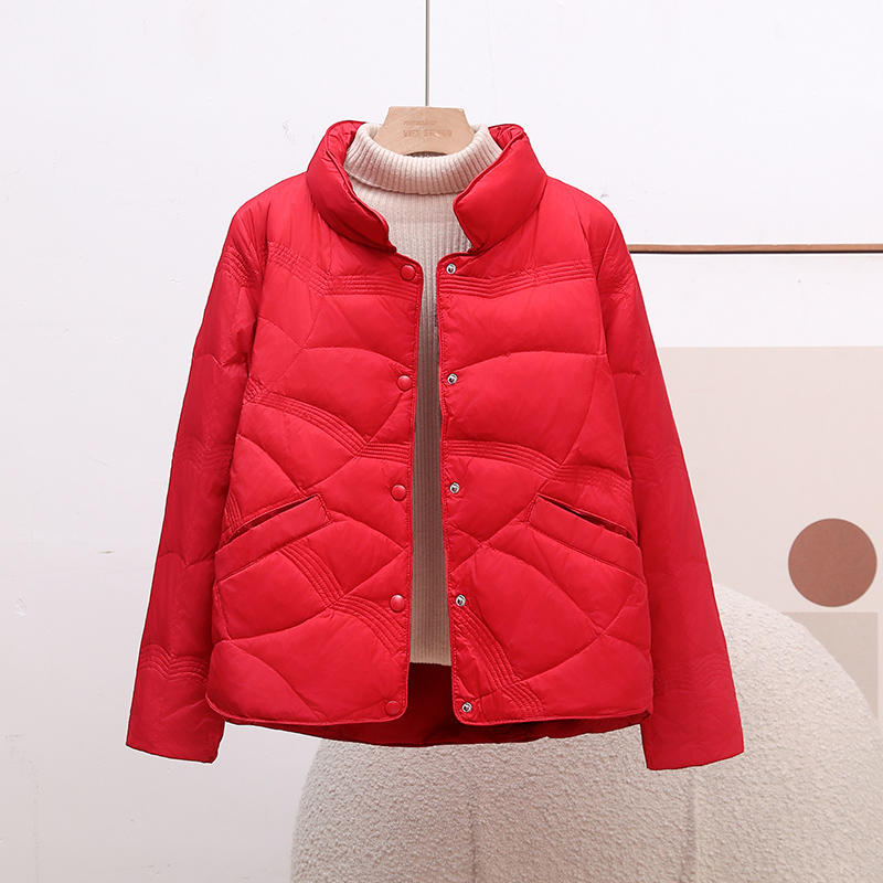 雪中飞新款国潮祥云轻薄羽绒服女短款立领薄款小个子冬季宽松外套