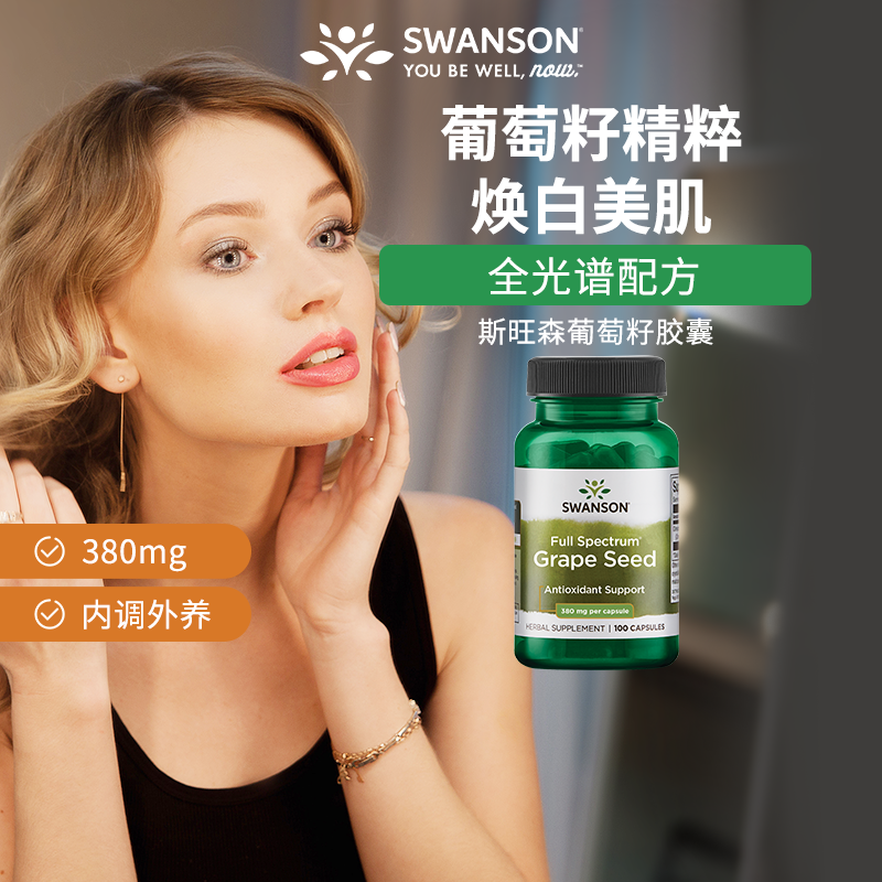 Swanson斯旺森葡萄籽精华胶囊100粒 皙颜花青素美国进口