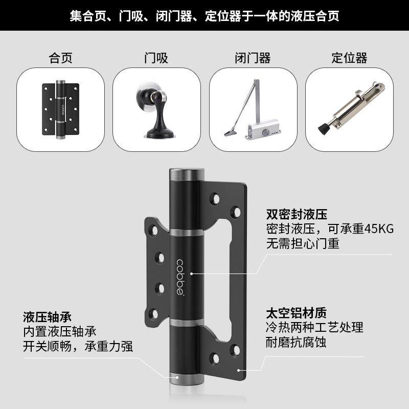 卡贝免开槽子母隐形门合页液压缓冲自动关门弹簧回弹专用闭门器