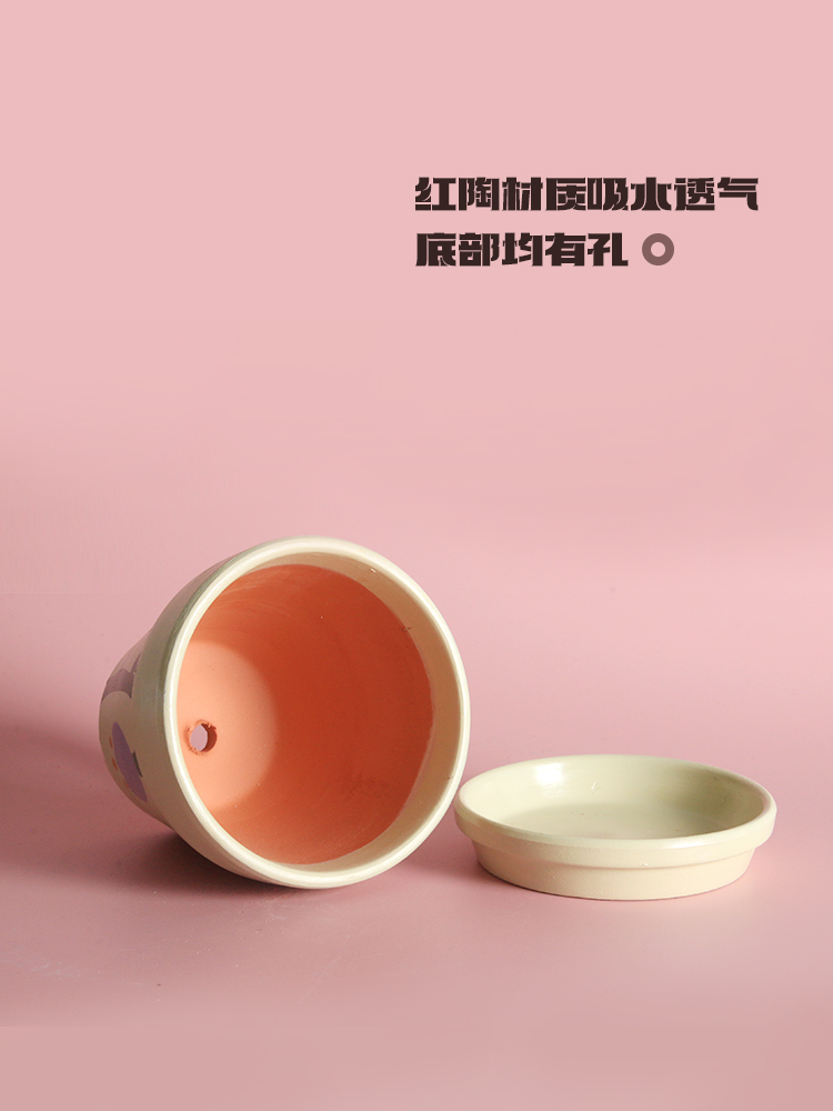 植物幻想粉墨复古花器手绘红陶盆绿植多肉创意可爱有趣办公室礼物