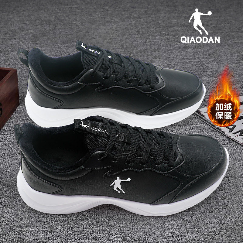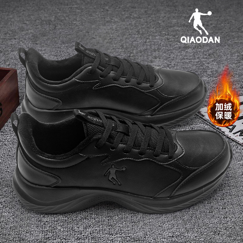乔丹运动鞋男鞋冬季新款加绒保暖二棉鞋子男士休闲皮面防水跑步鞋