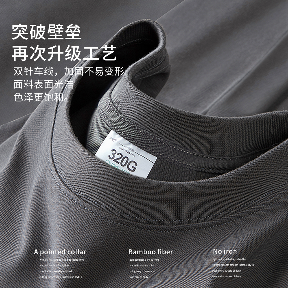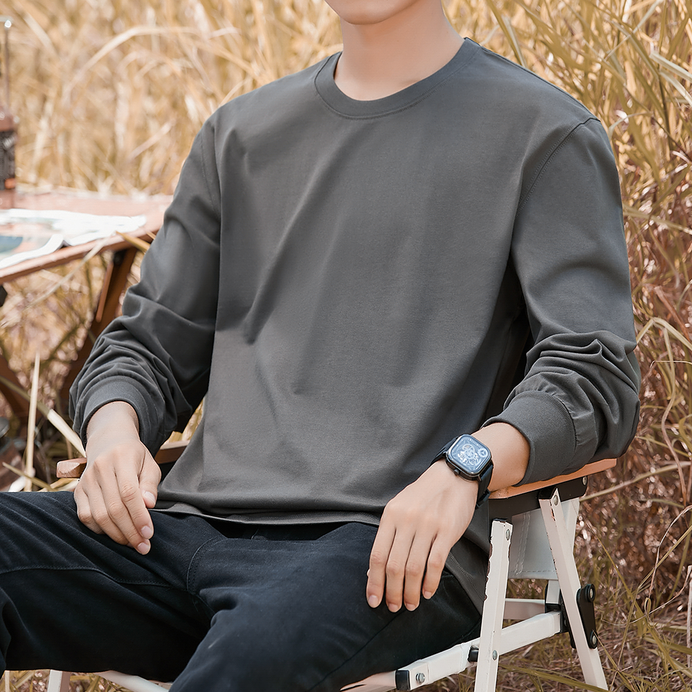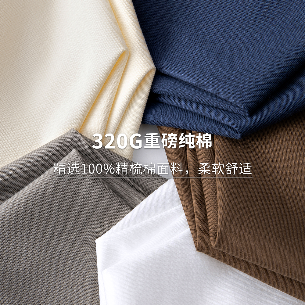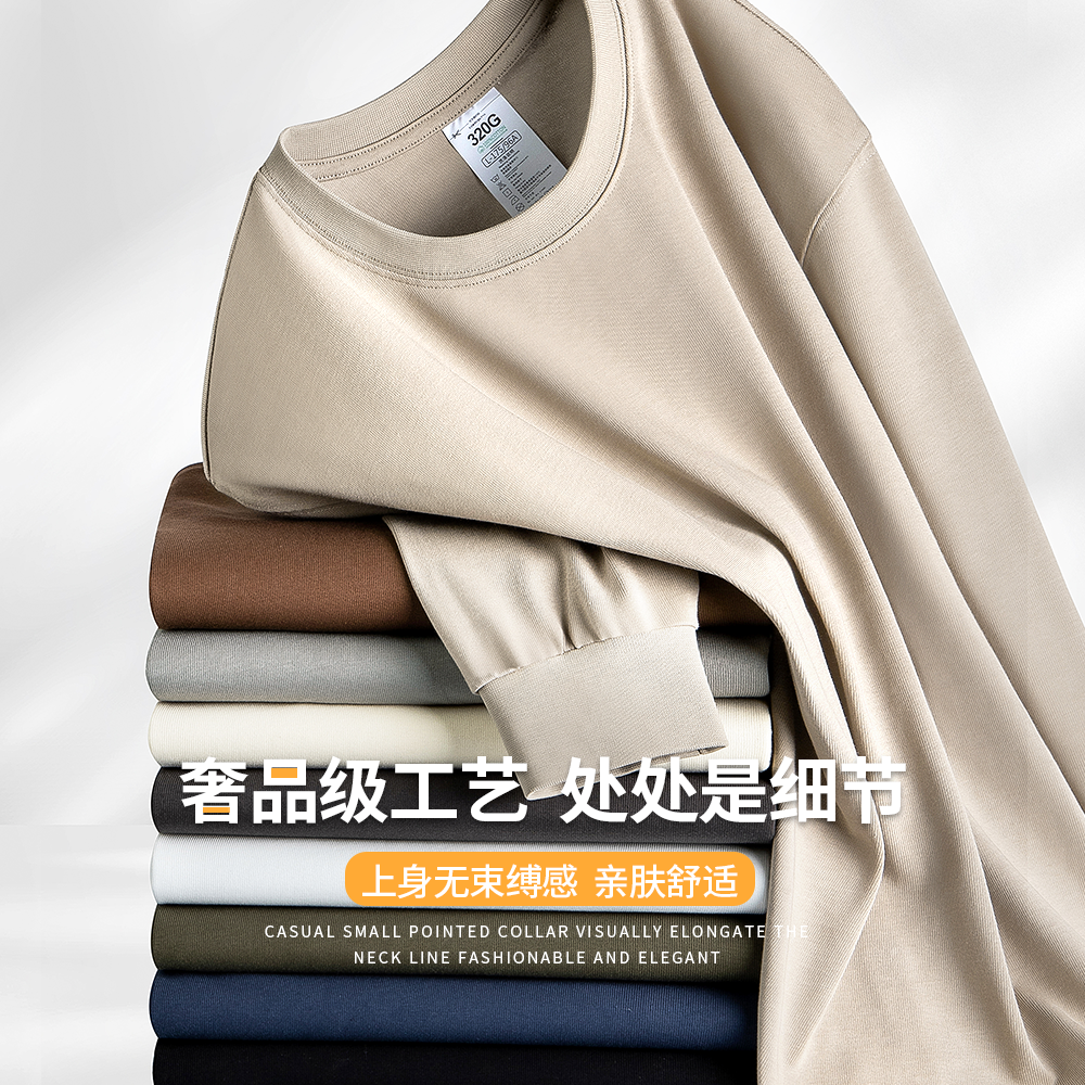 320g重磅纯棉长袖t恤男春秋季精梳棉打底衫宽松厚实纯色圆领卫衣