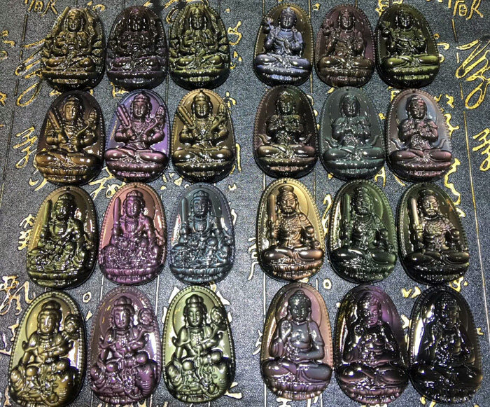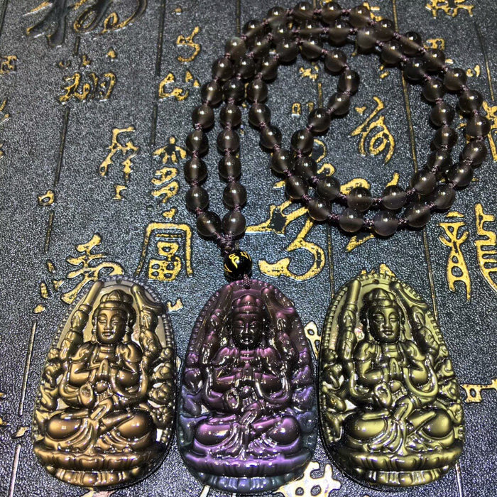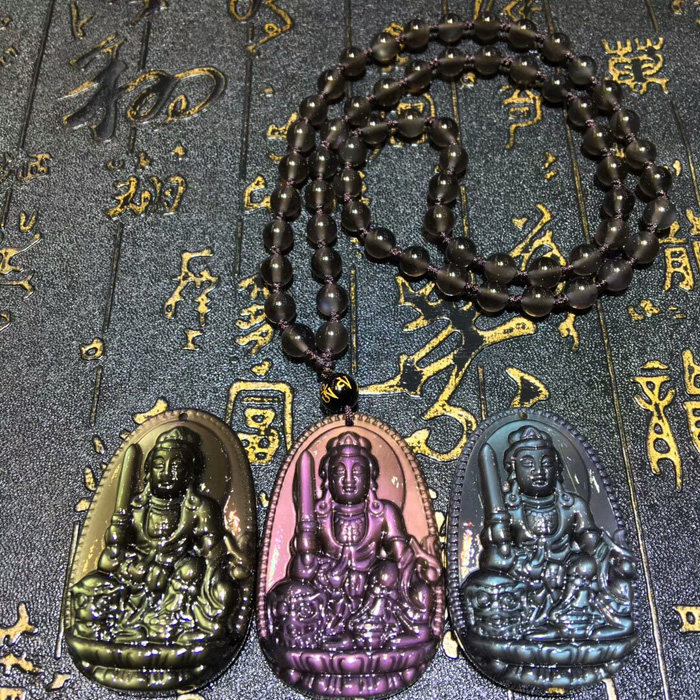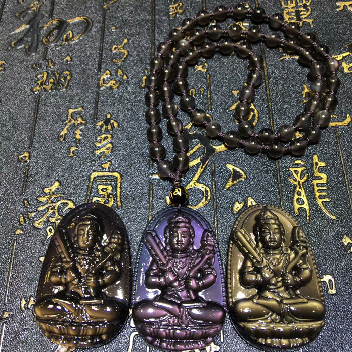 千蕊 天然黑曜石吊坠 冰彩黑曜石八大守护神项链12生肖项坠毛衣链