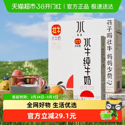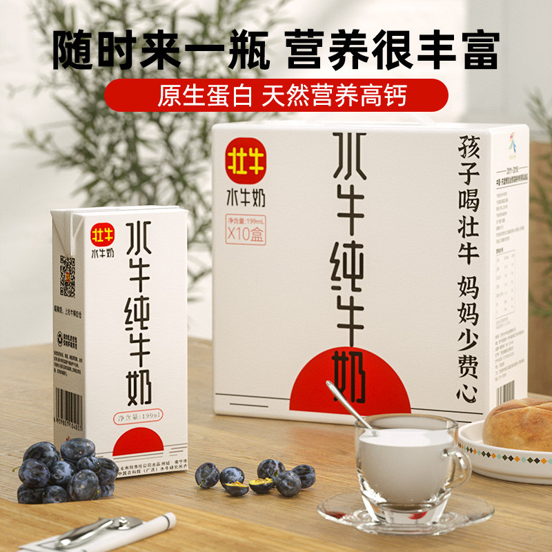 广西壮牛水牛纯牛奶199mlx20盒装整箱儿童学生早餐礼盒装家庭送礼