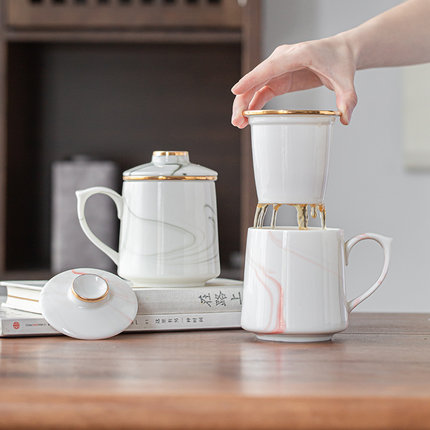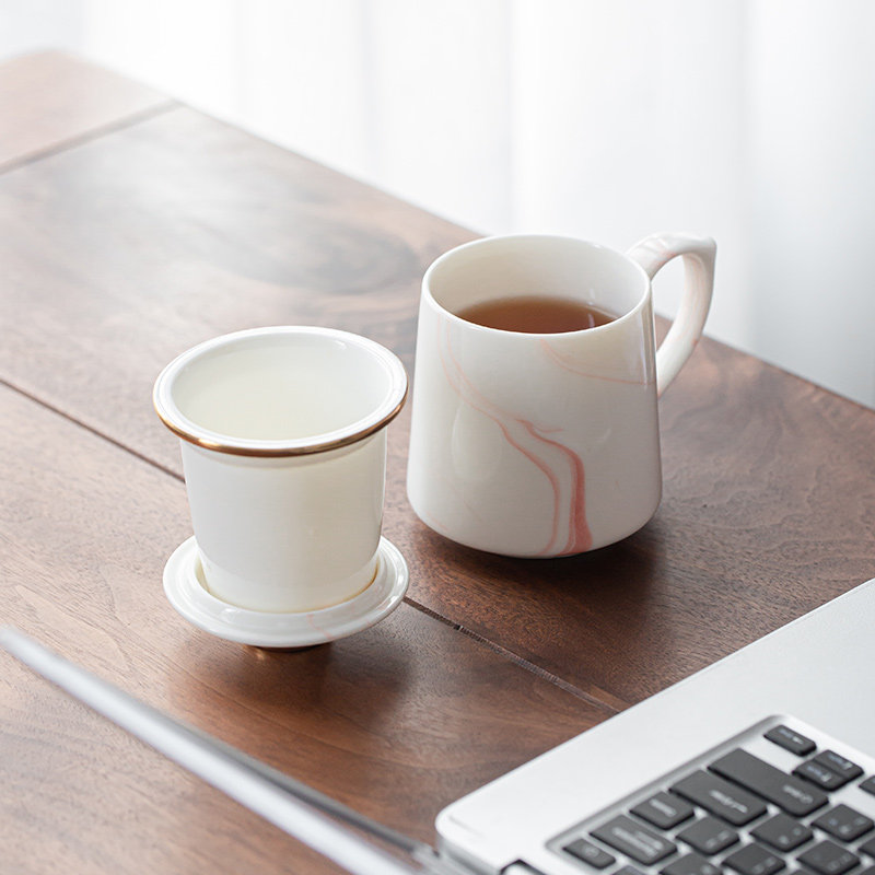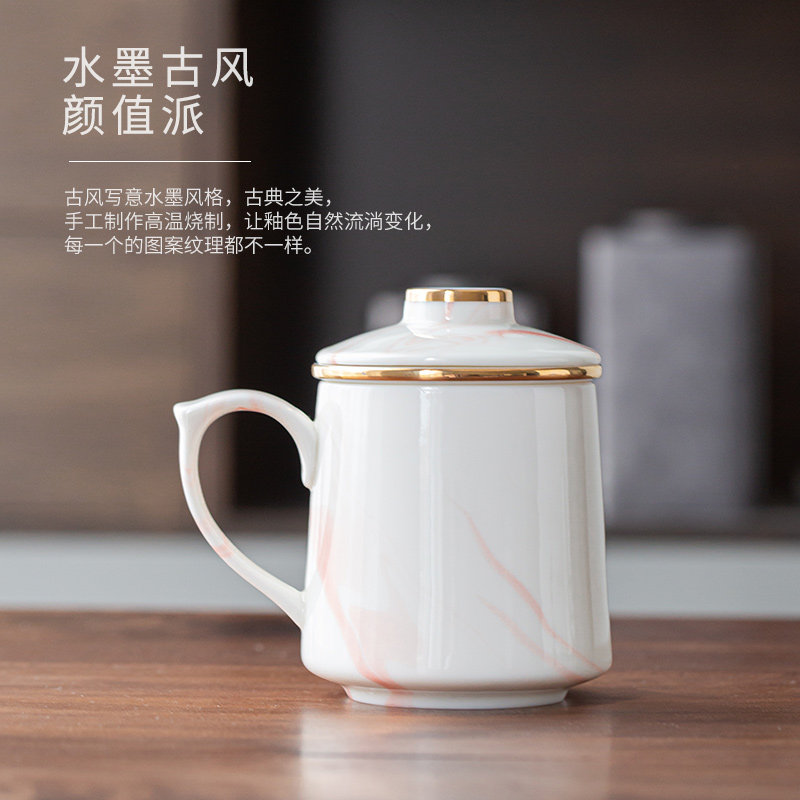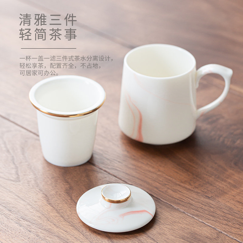 羊脂玉陶瓷白瓷办公杯水墨杯过滤茶杯绿茶杯家用水杯大容量泡茶杯