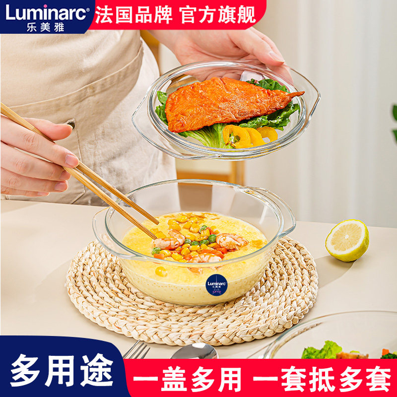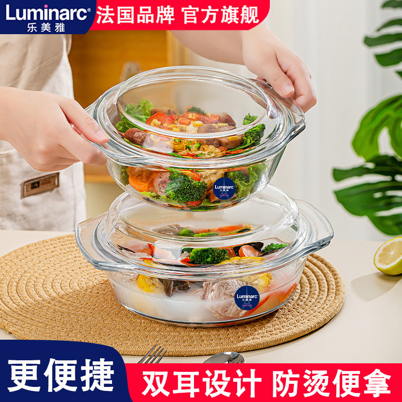乐美雅高硼硅玻璃碗家用带盖汤碗
