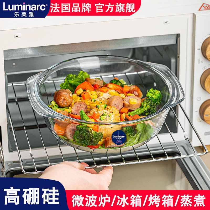 乐美雅高硼硅玻璃碗家用带盖双耳泡面碗汤碗耐高温微波炉专用汤煲