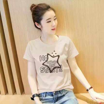 外贸一线大牌捡漏全棉短袖t恤女韩版时尚印花百搭休闲体恤上衣服
