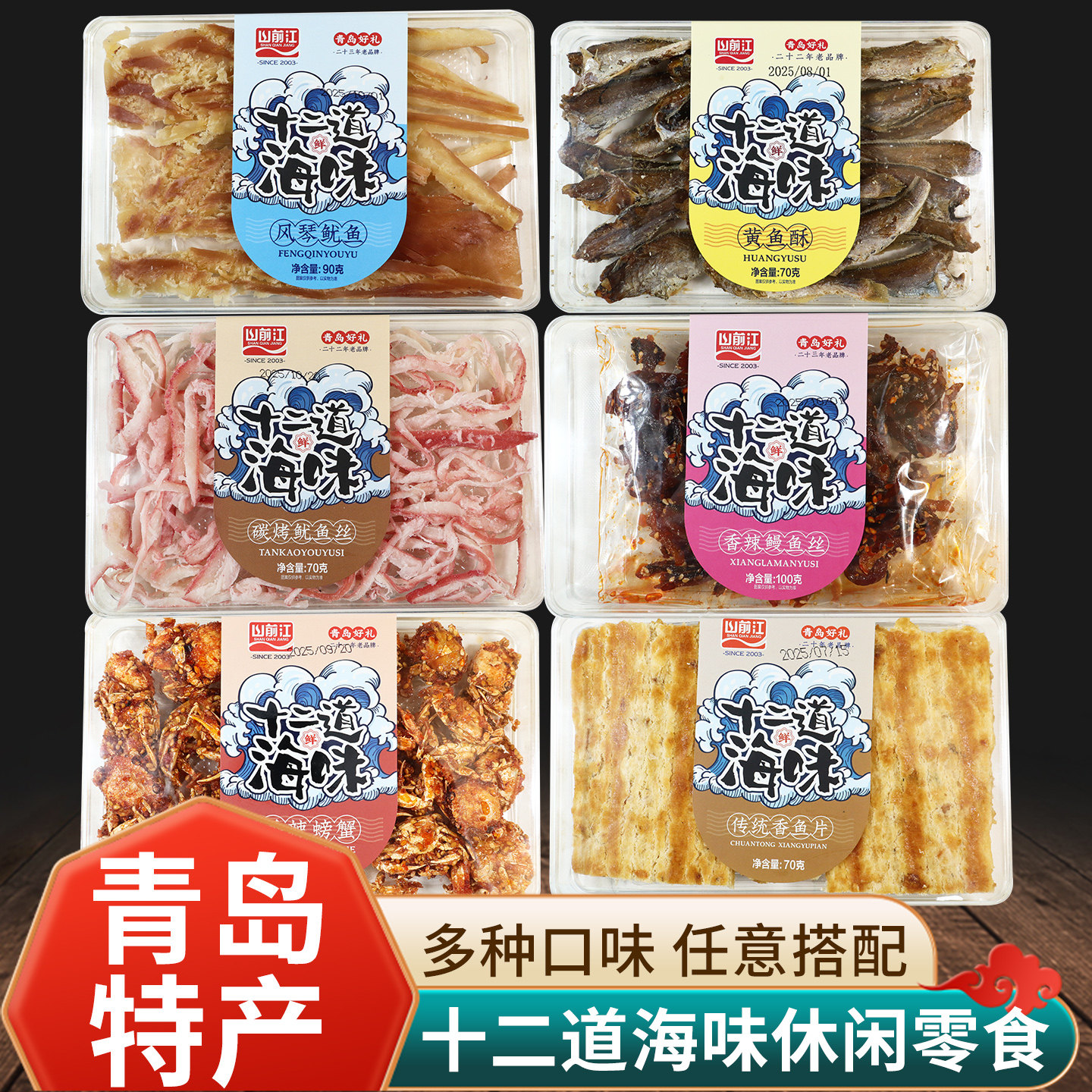 山前江十二道海味70克水晶盒青岛特产干海鲜伴手礼小吃零食鱿鱼丝