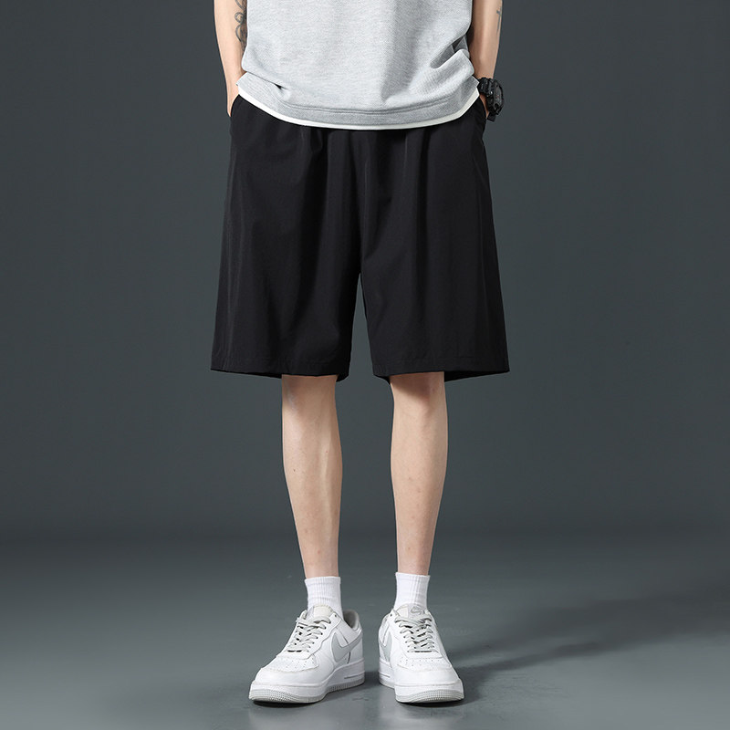 GL真维斯黑色短裤男款夏季薄款宽松五分裤2025新款直筒休闲中裤子
