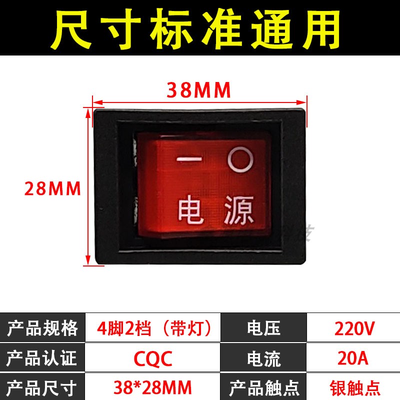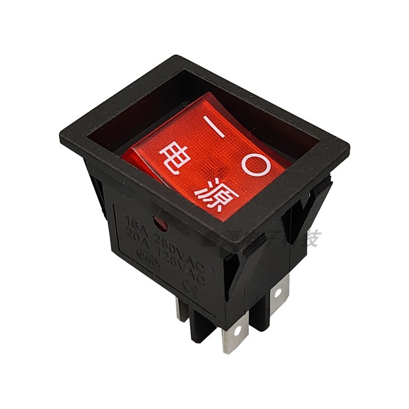 电暖桌取暖桌电暖器火炉RS606开关4脚红色麻将桌电源开关带灯20A
