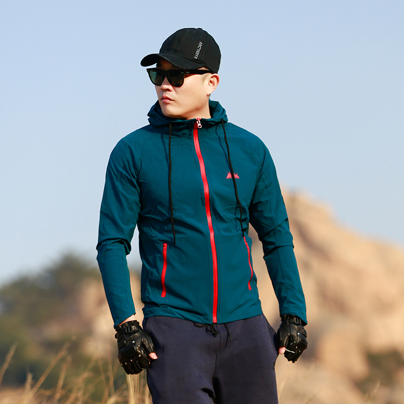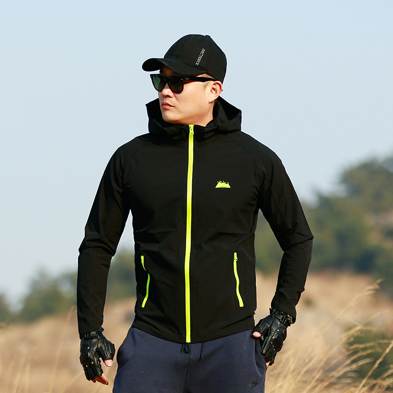 淘淘户外男式登山尼速干衣开衫连帽卫衣晨练服防泼水防风冲锋衣