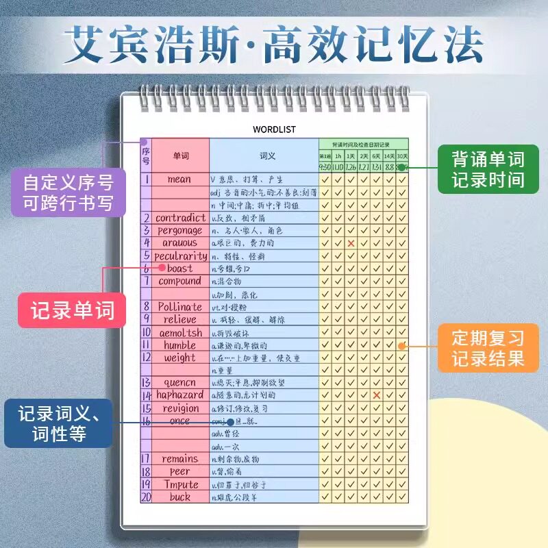 艾宾浩斯英语单词遗忘曲线记忆本初高中大学生四六级默写神器简约
