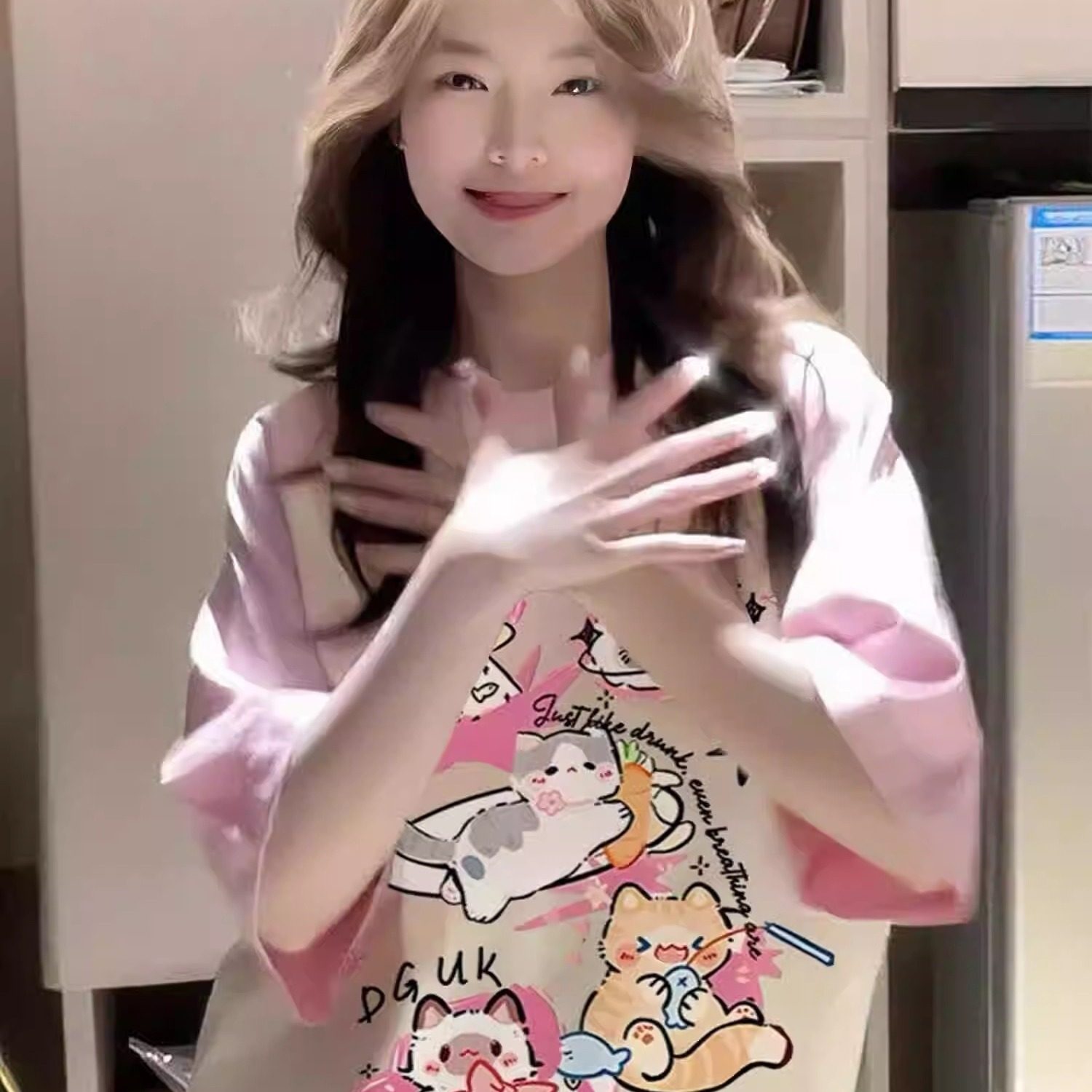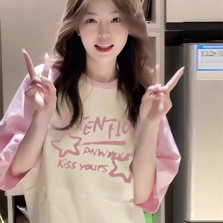 粉色纯棉插肩短袖T恤女2025新款夏季韩系慵懒宽松半袖设计感上衣