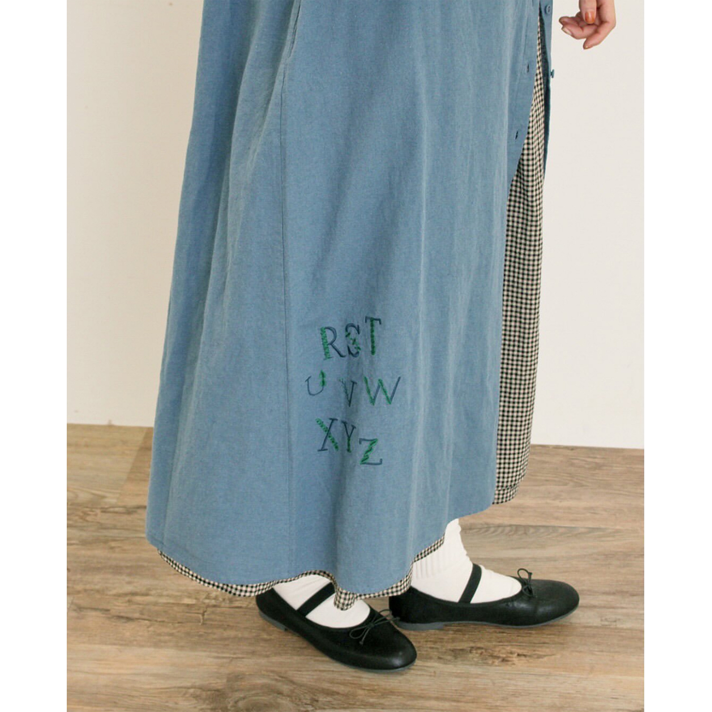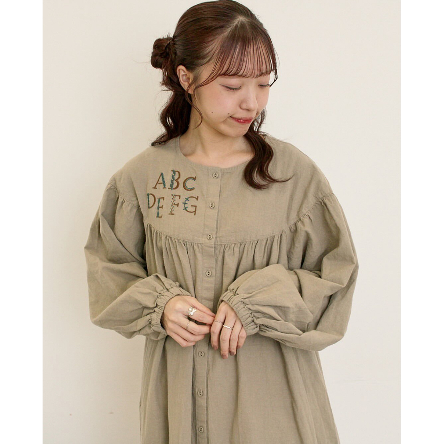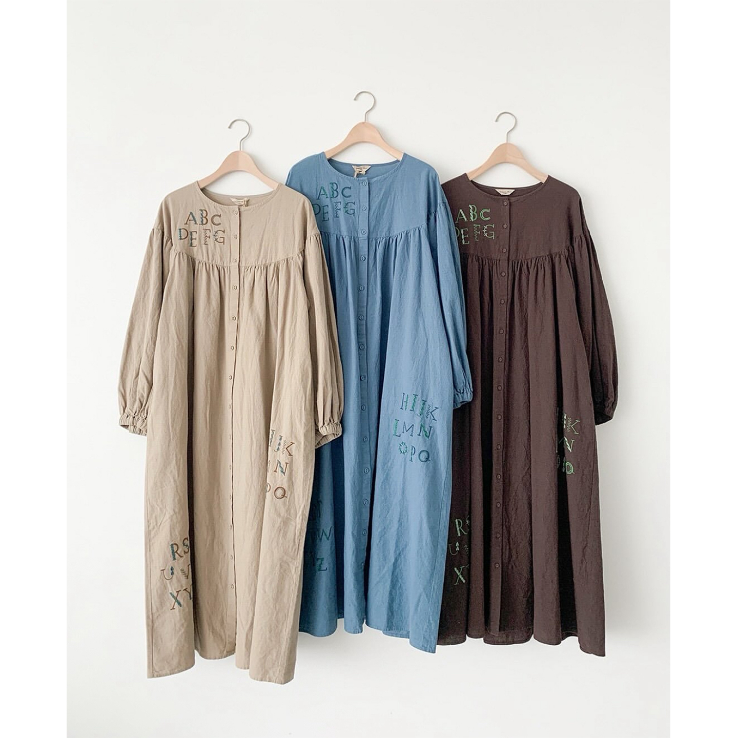 精品日单 S家棉麻字母刺绣连衣裙森系女士宽松圆领口袋纽扣长袖裙
