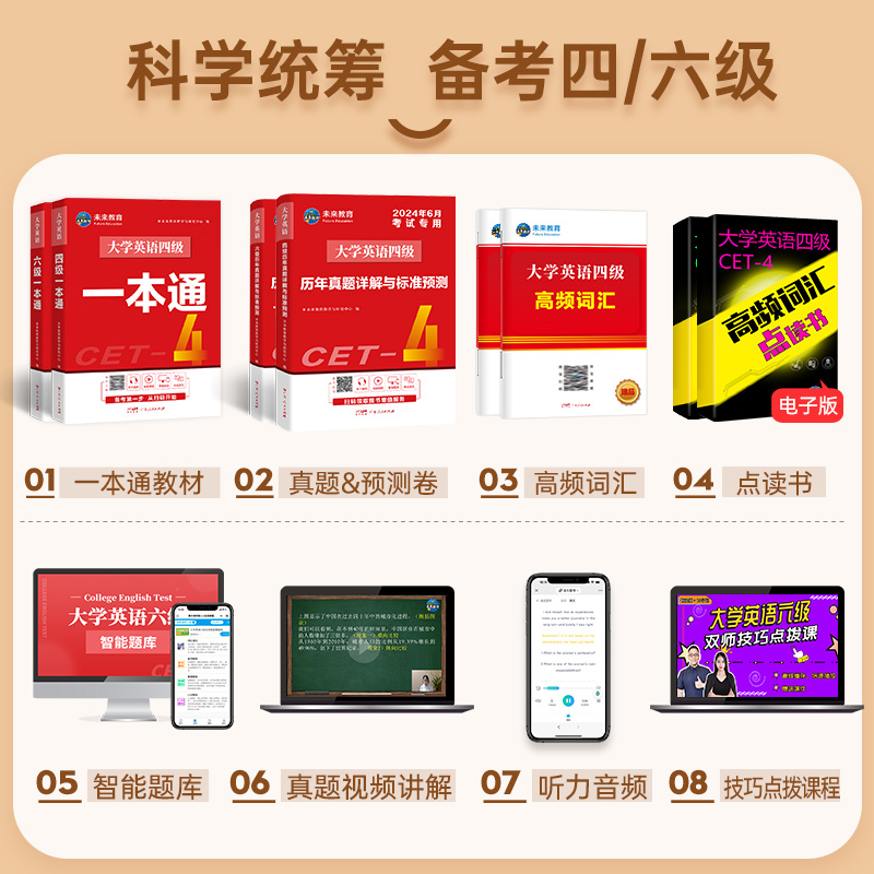 备考2024年6月大学英语四级考试英语真题词汇试卷试题一本通教材英语六级词汇书搭配星火真题资料书华研未来教育高频词汇题库视频