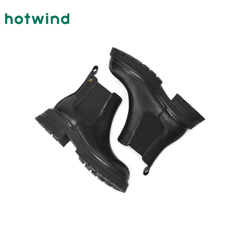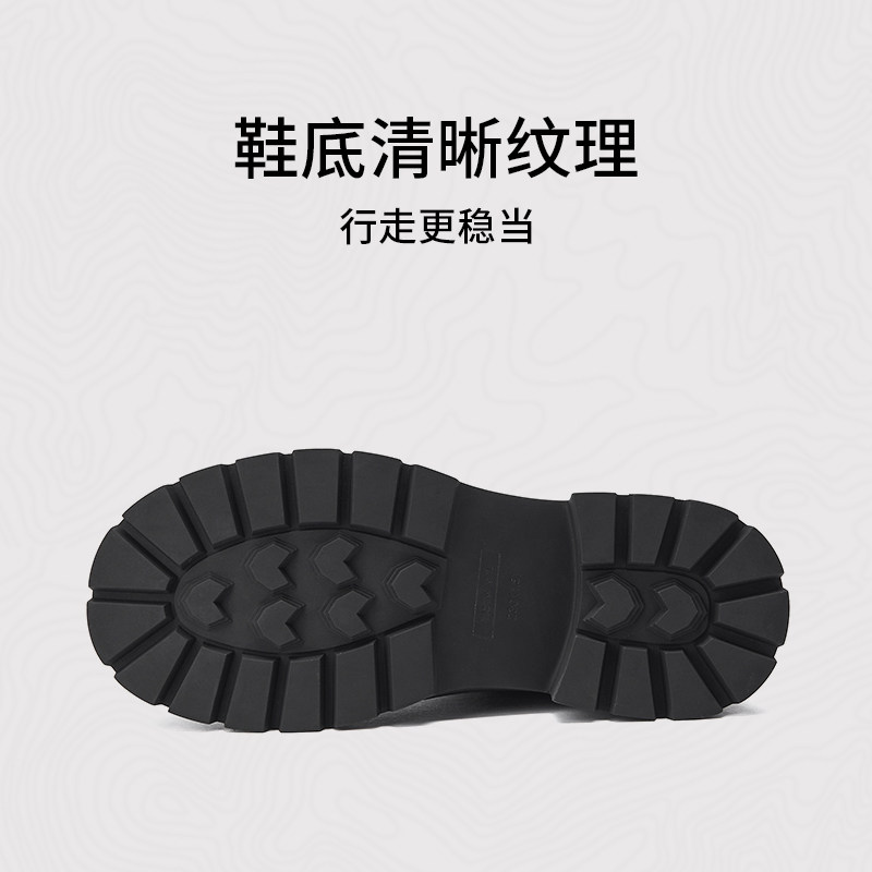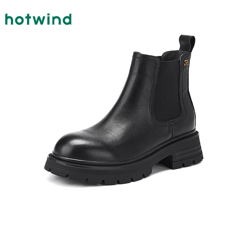 热风厚底时装靴女款2025年冬季新款英伦风粗跟短靴黑色切尔西靴