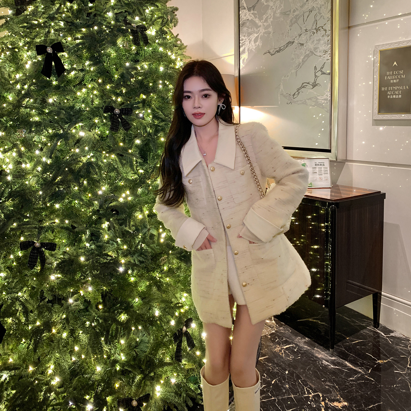 ByYou 冬季高级感翻领羽绒内胆小香毛呢外套女中长款加厚呢子大衣