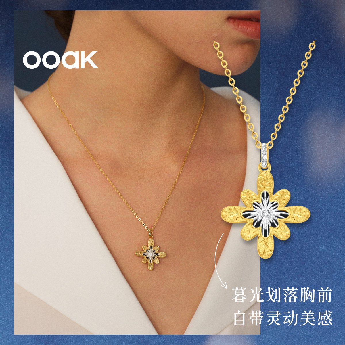 【新品上市】OOAK界格雕金烟花雨系列日落烟花黑玛瑙雕金项链