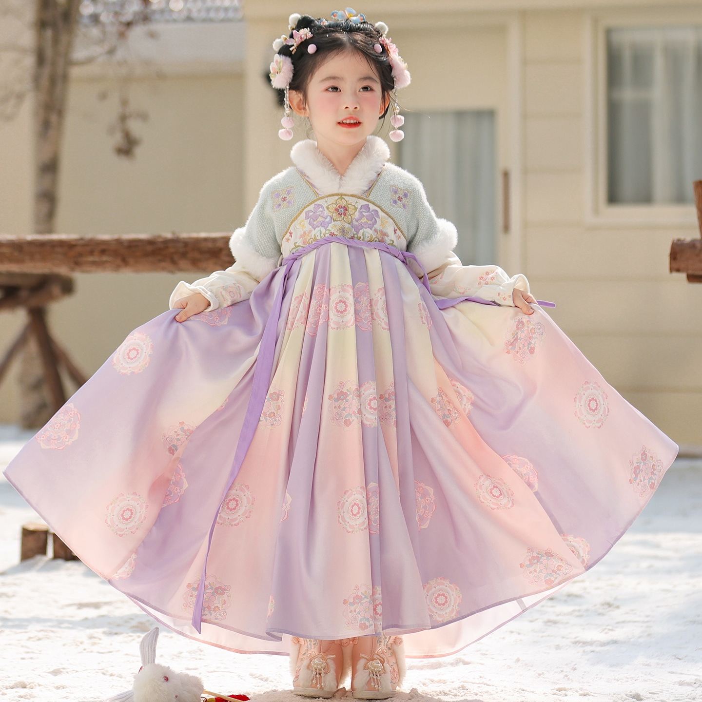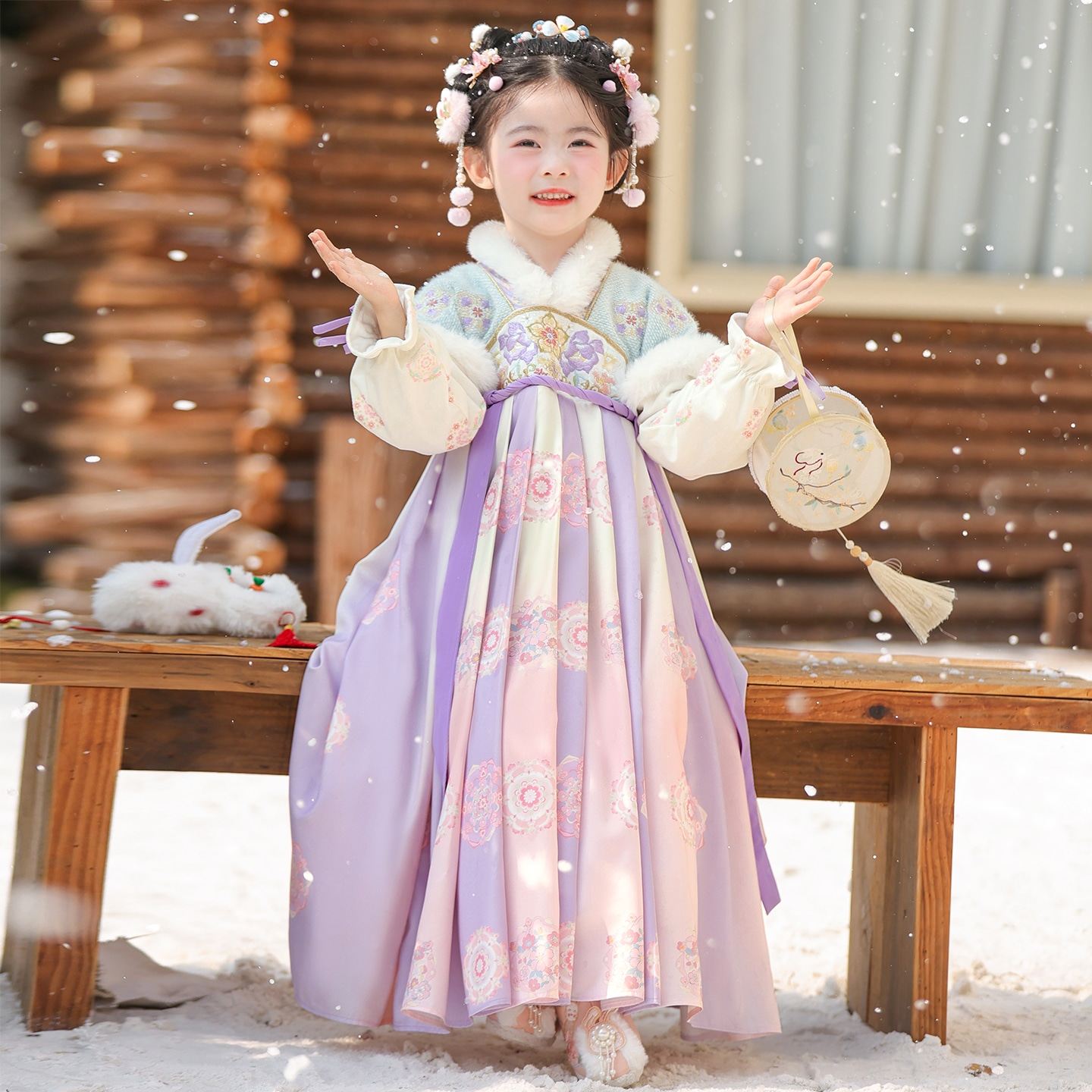 汉服女童冬装2025新款儿童古风加绒连衣裙冬季中国风古装秋冬裙子