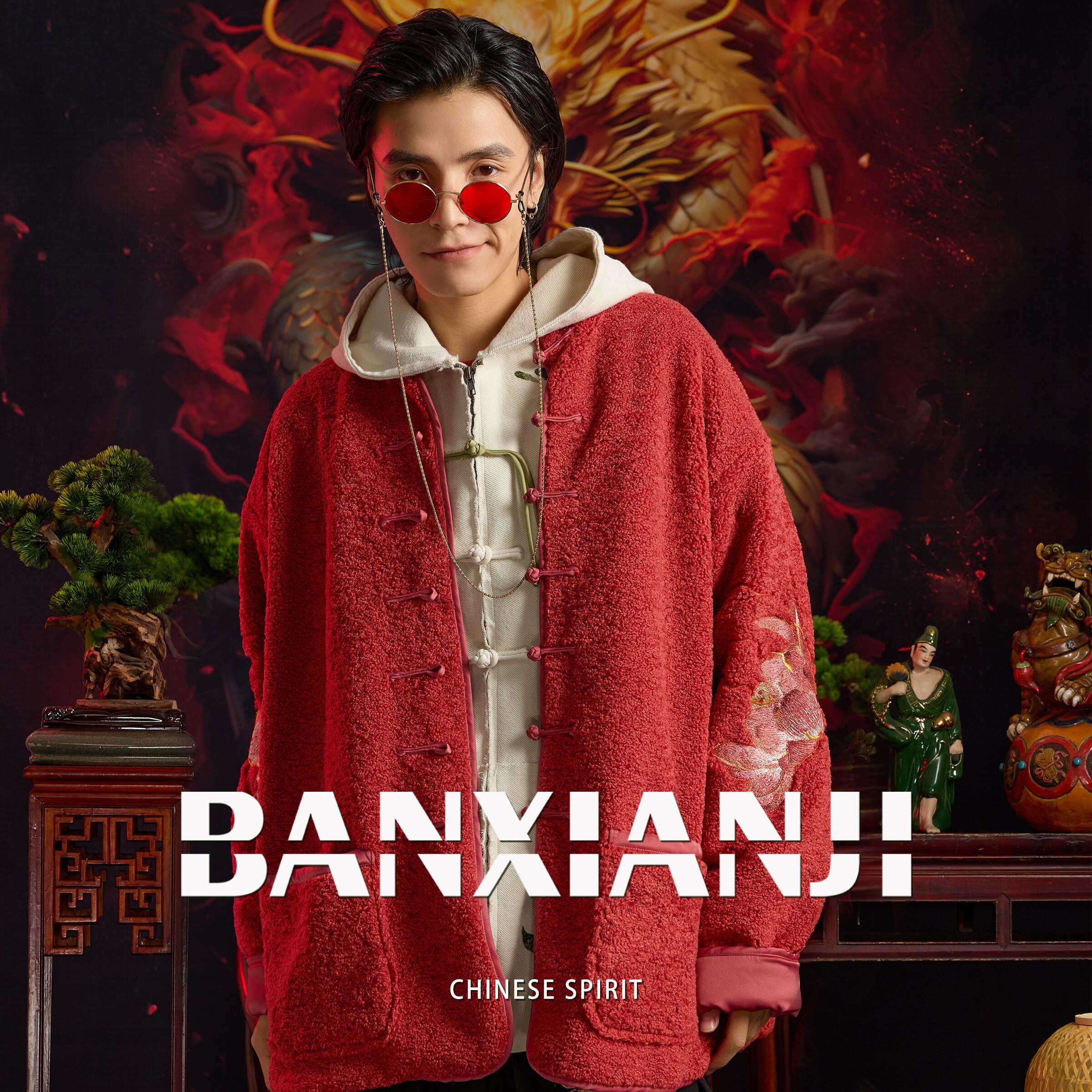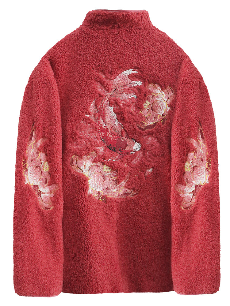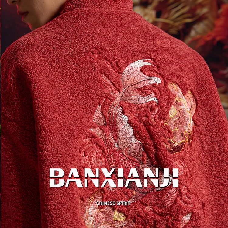 半闲集 锦鲤羊羔绒男士唐装本命年红色国风新中式女装冬季外套