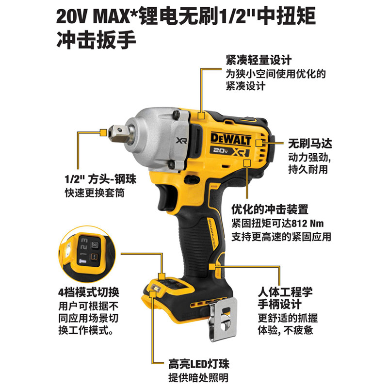 Dewalt得伟DCF892充电扳手20V无刷锂电冲击扳手1/2大扭力汽修风炮
