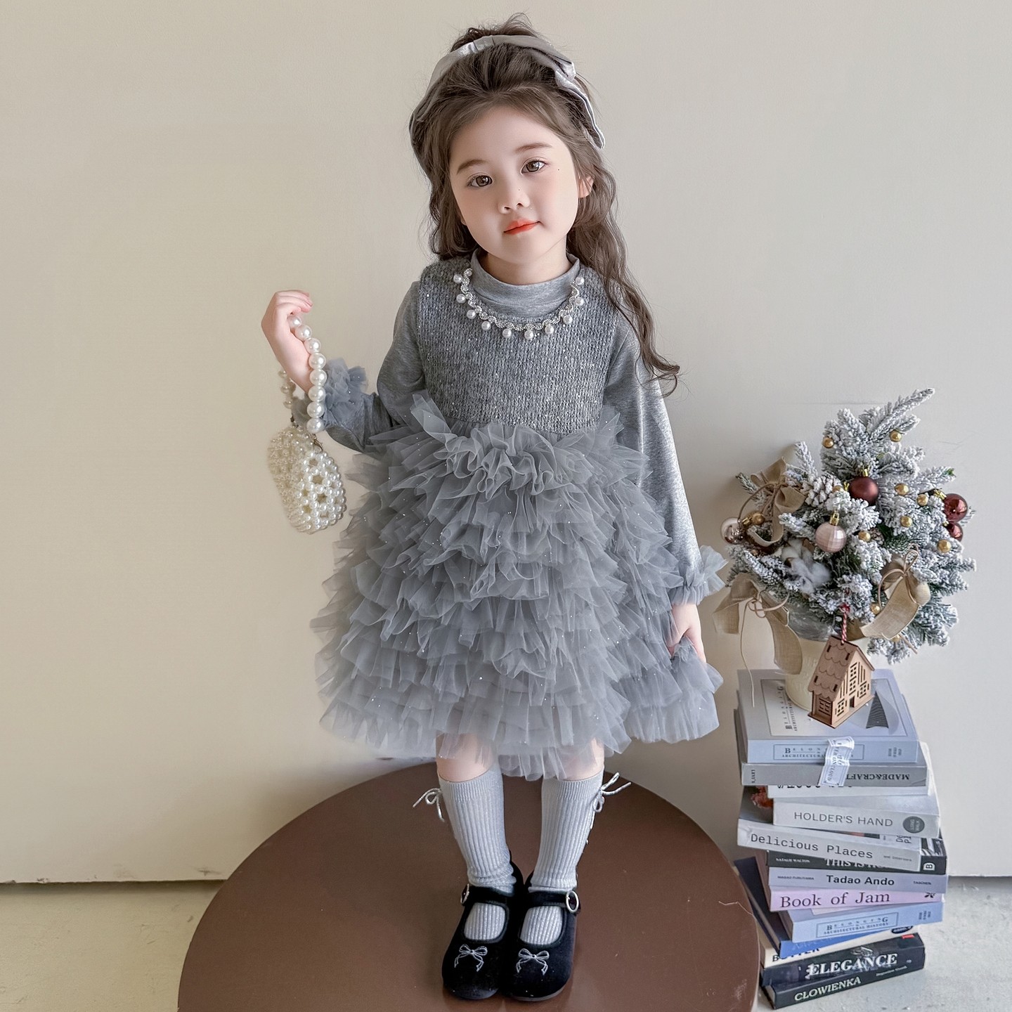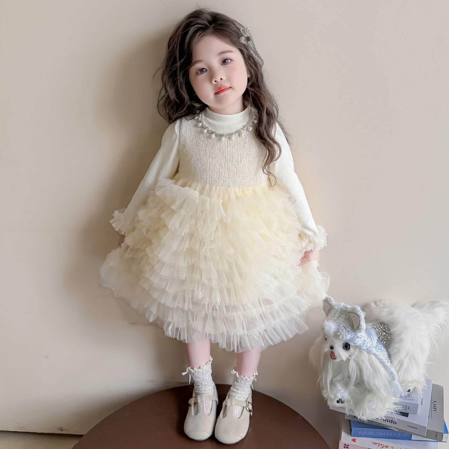 女童连衣裙2026新款洋气儿童春秋蛋糕网纱裙宝宝公主裙周岁礼服裙