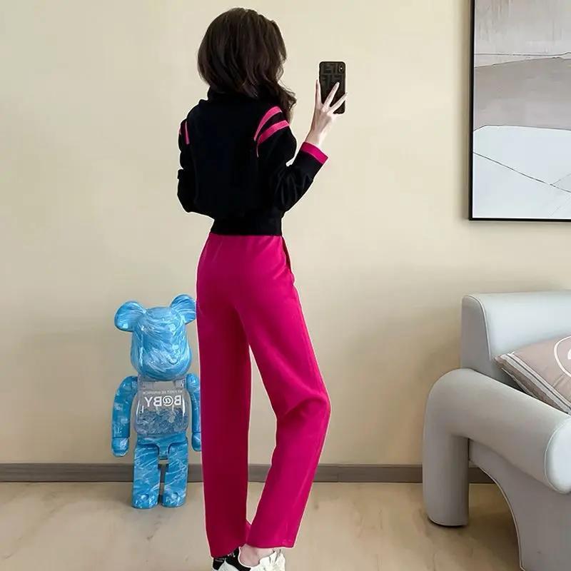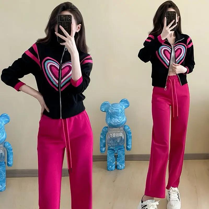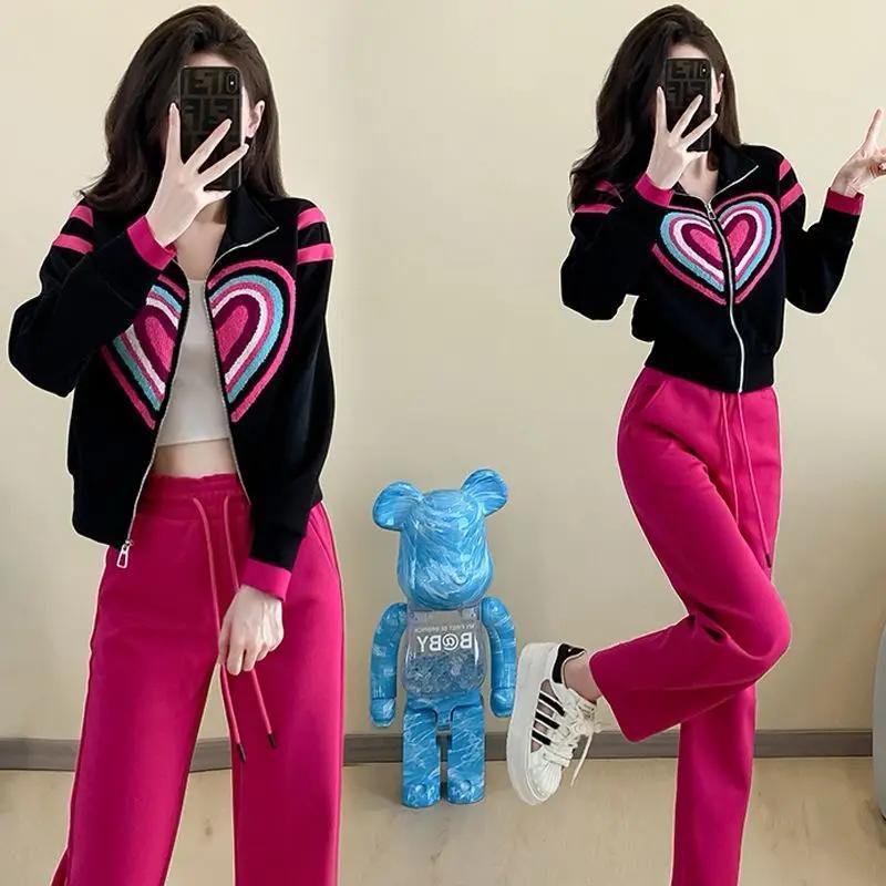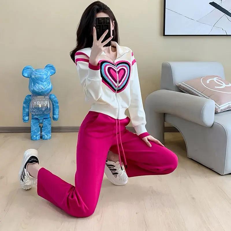 休闲运动套装女秋冬小个子流行漂亮时尚刺绣爱心卫衣直筒裤两件套