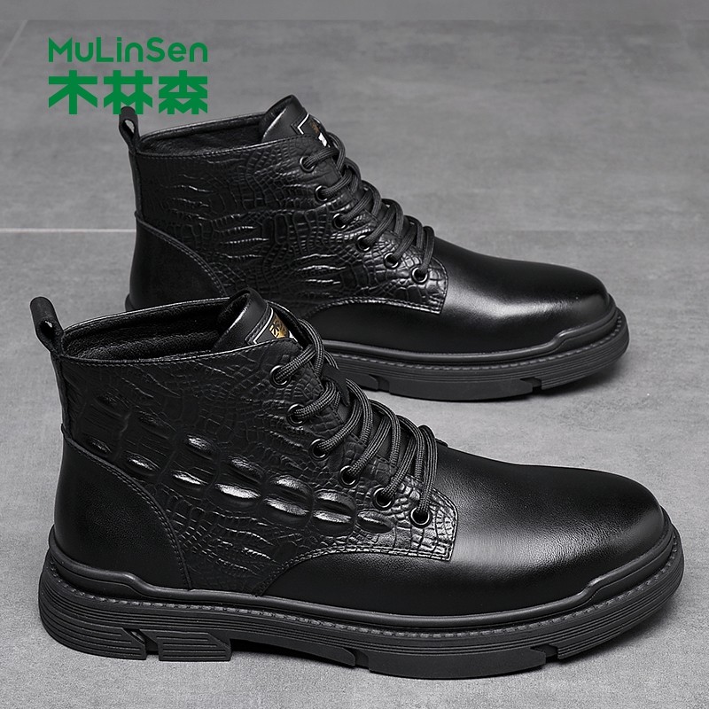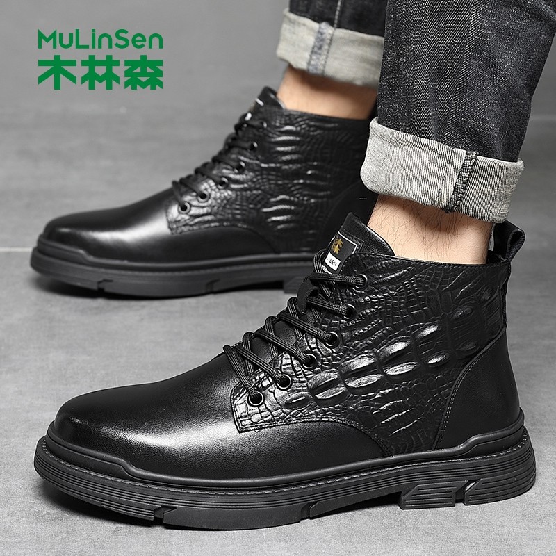 木林森冬季马丁靴男款休闲皮鞋