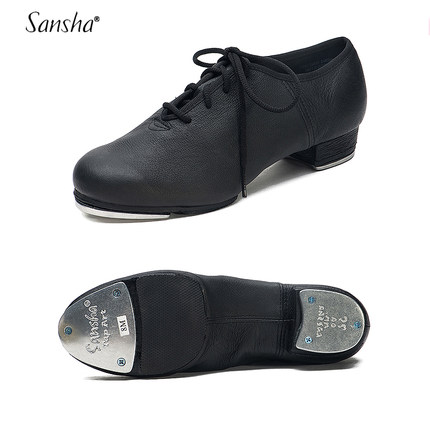 Sansha 三沙烤焦皮踢踏舞蹈鞋系带软皮两片底黑色成人踢踏鞋女款