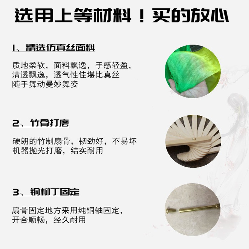 舞蹈扇子火焰扇加长扇跳舞扇三色渐变真丝扇广场舞长绸舞蹈扇长扇
