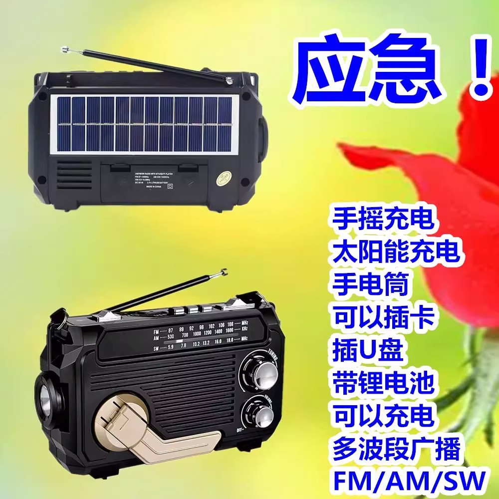 777多波段收音机应急手摇发电太阳能充电带手电插卡U盘蓝牙