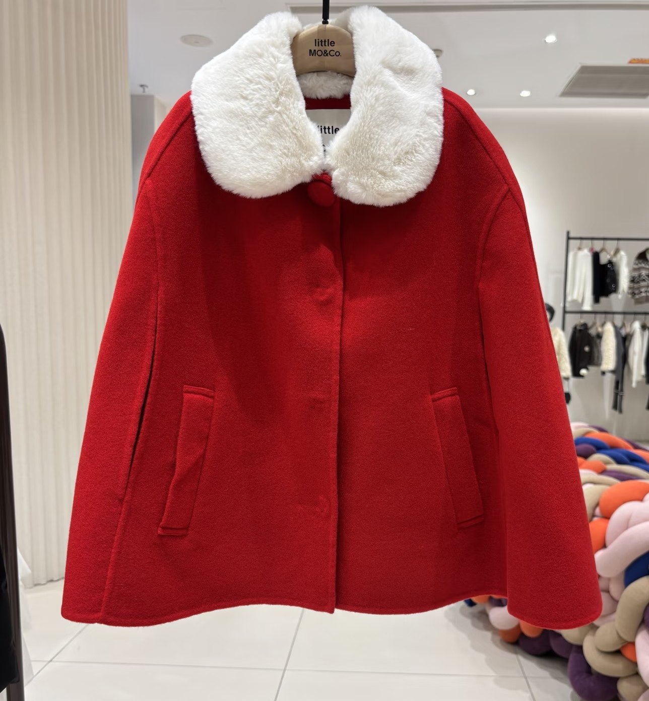 Littlemoco专柜正品25年冬款新品儿童毛领外套KBE4COT005