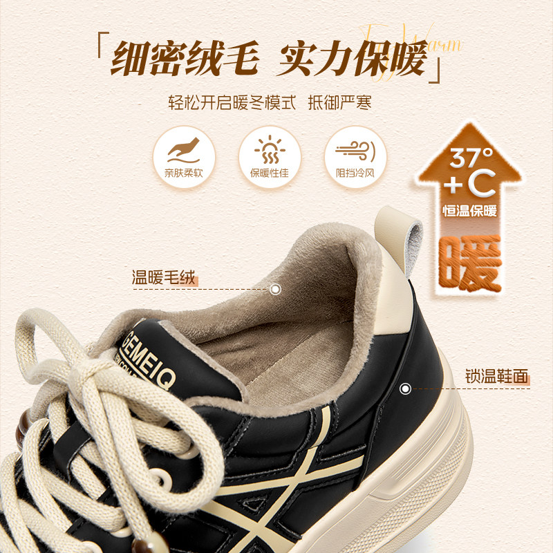 戈美其商场同款加绒小白鞋女2025新款秋冬小个子增高百搭休闲板鞋