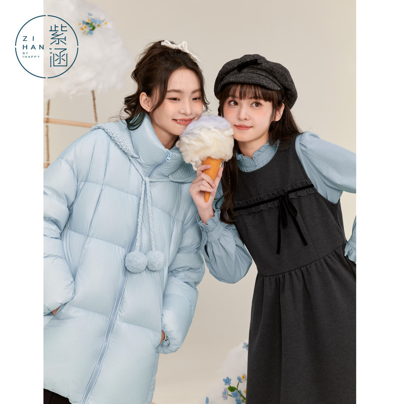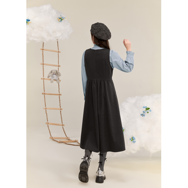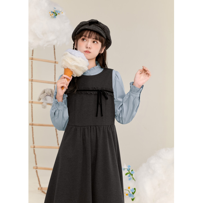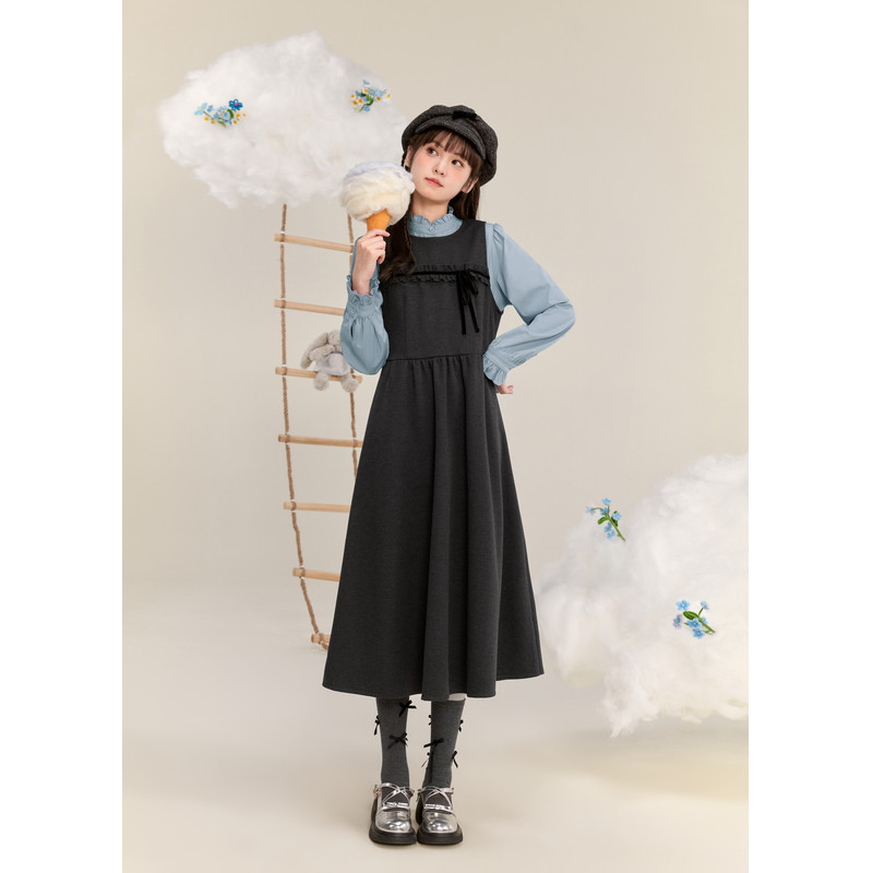 紫涵无袖背心连衣裙女冬季新款蝴蝶结甜美学院风叠穿中长款a字裙