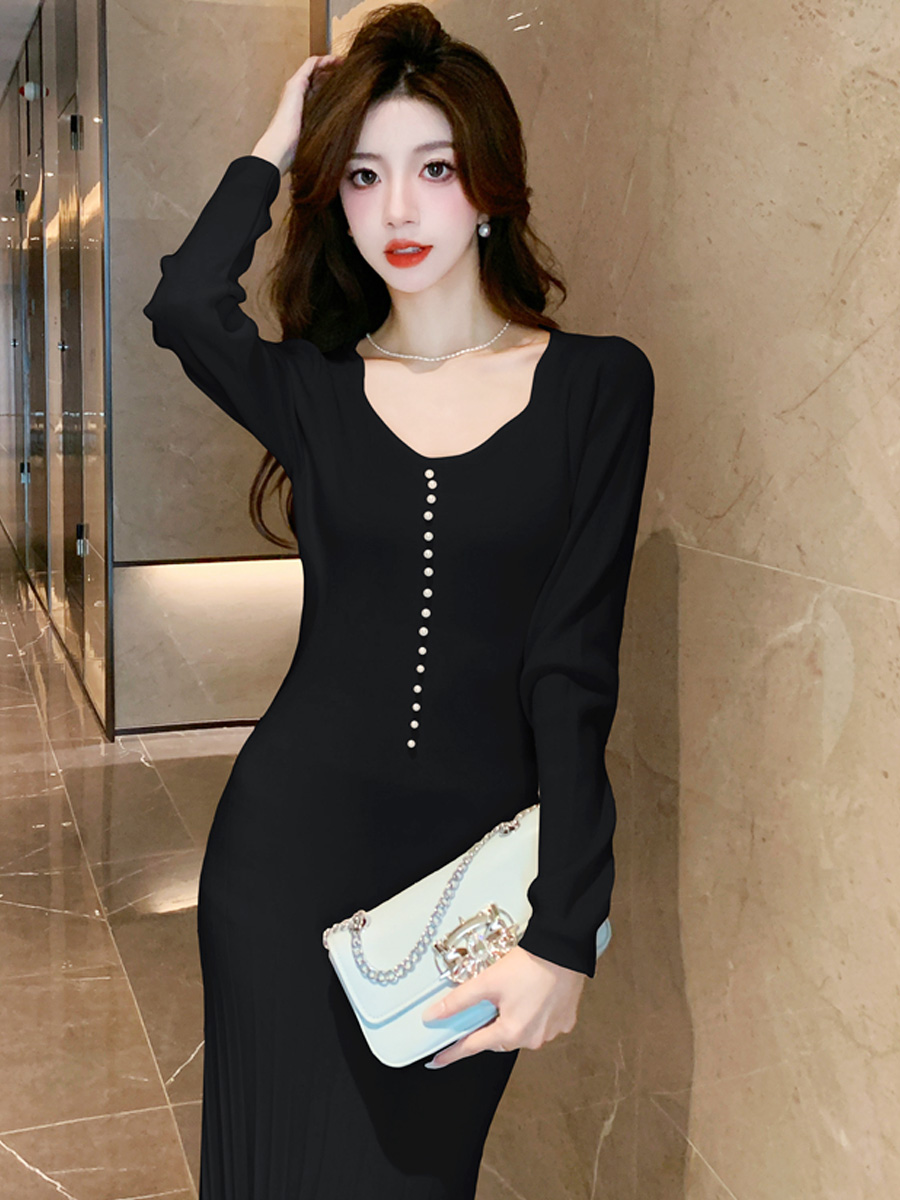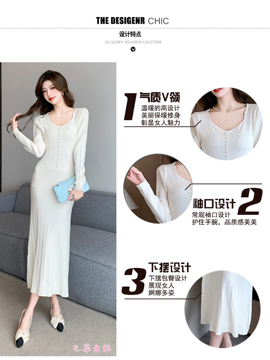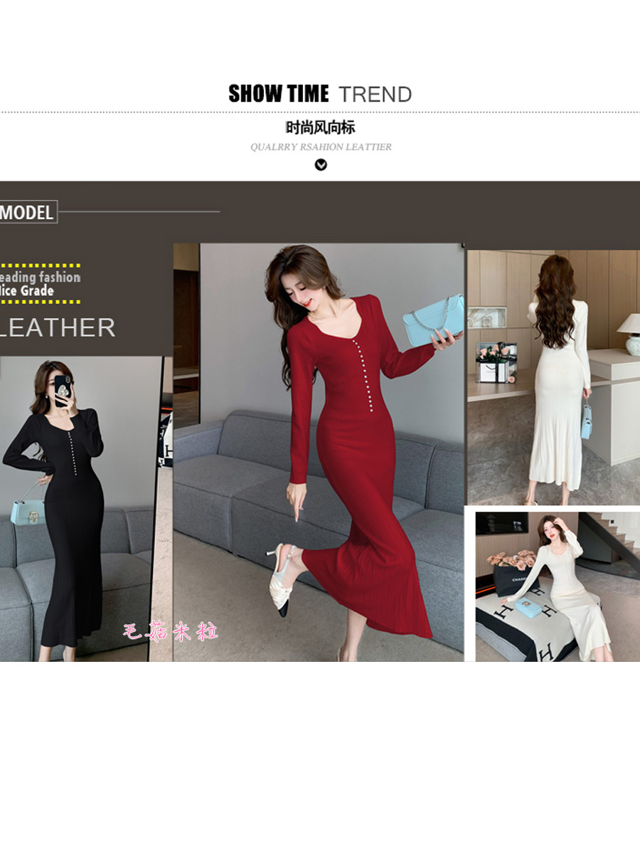 针织连衣裙女秋冬季法式气质女人味收腰显瘦配大衣长款毛衣打底裙