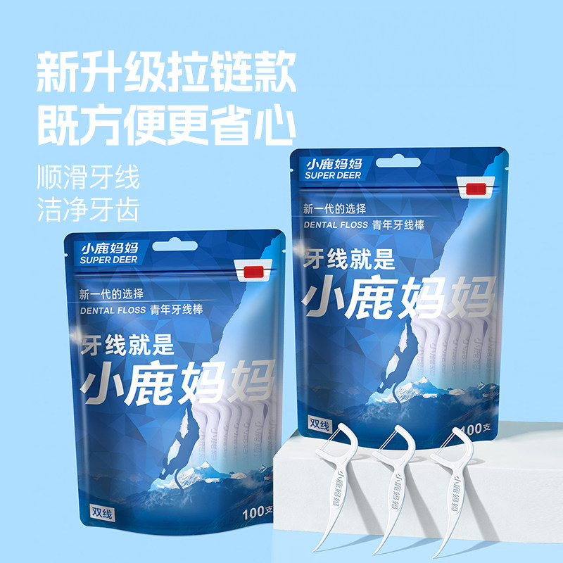 【芭芭农场】小鹿妈妈青年款双线牙线棒100支/袋*3袋(送随身盒)