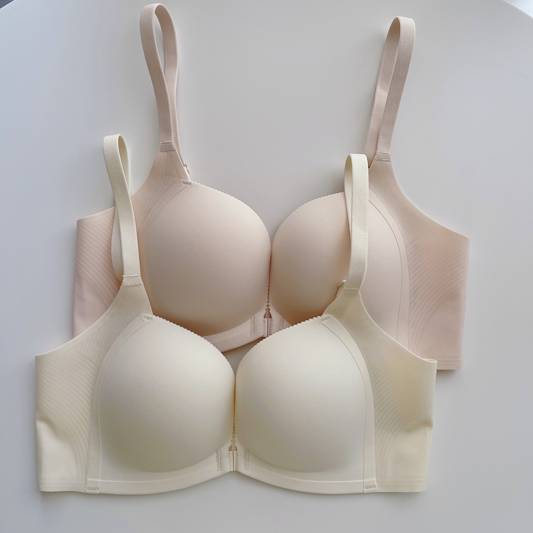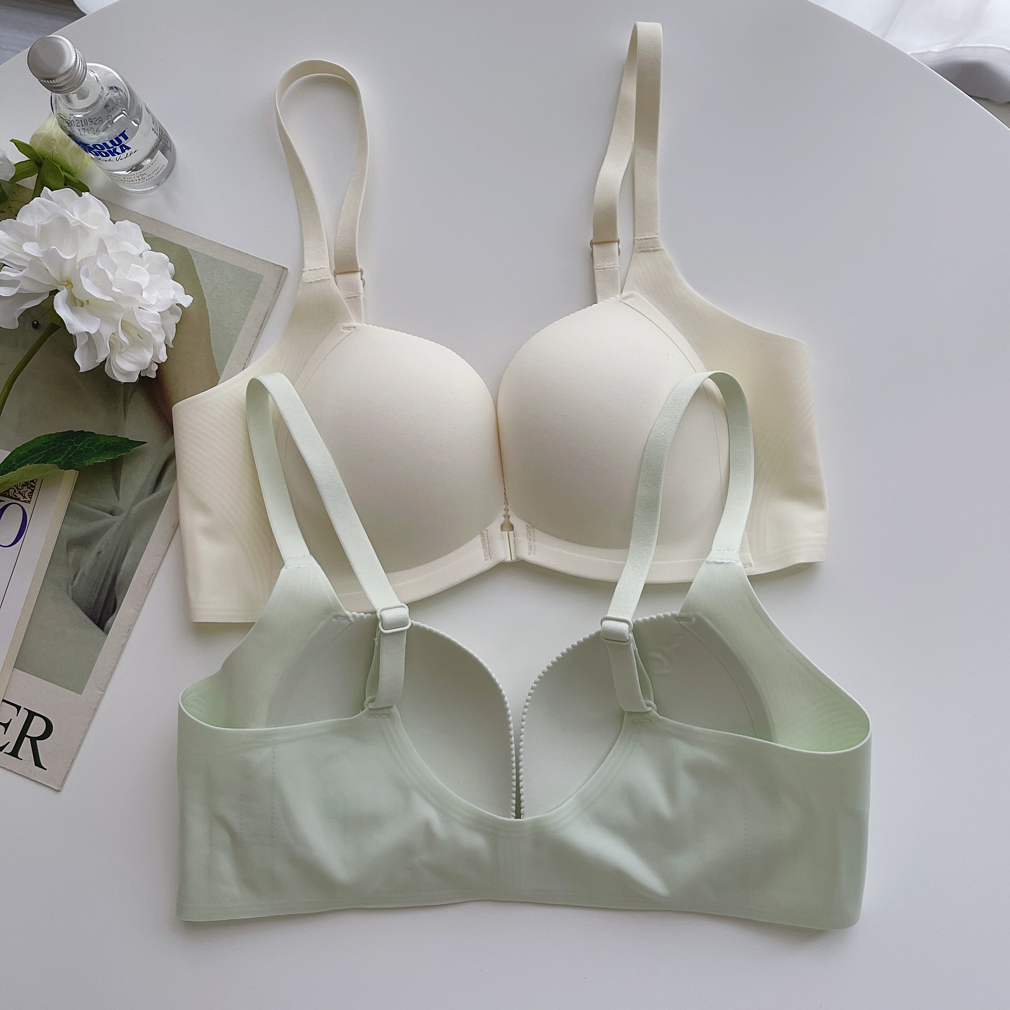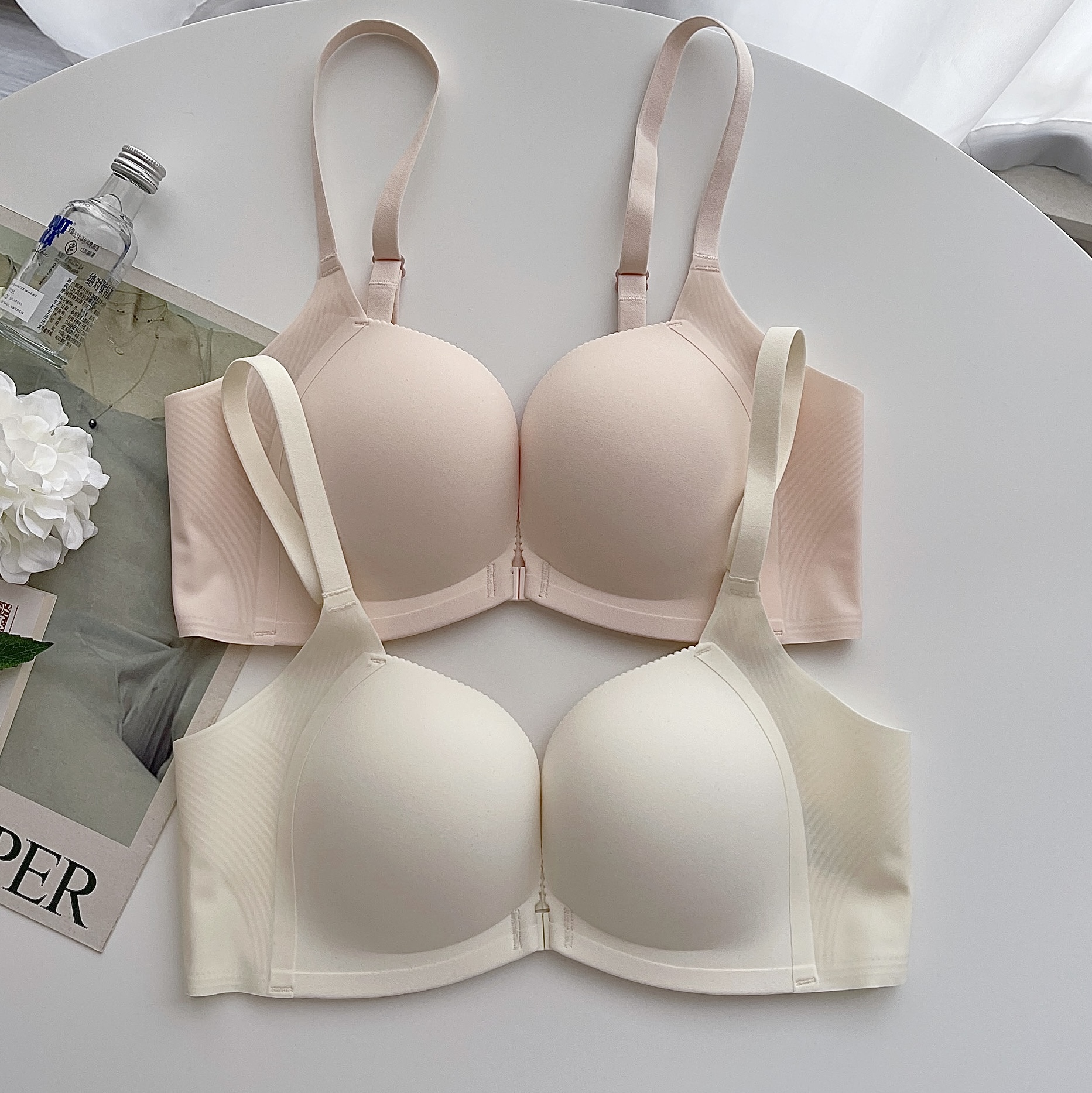 空杯救星2024新小胸聚拢显大前开扣厚杯文胸无痕无钢圈果冻条内衣