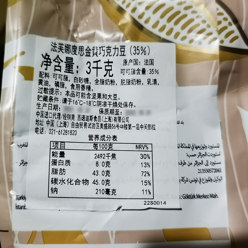 法国进口法芙娜度思金黄巧克力币35%西点装饰烘焙500g 牛奶巧克力