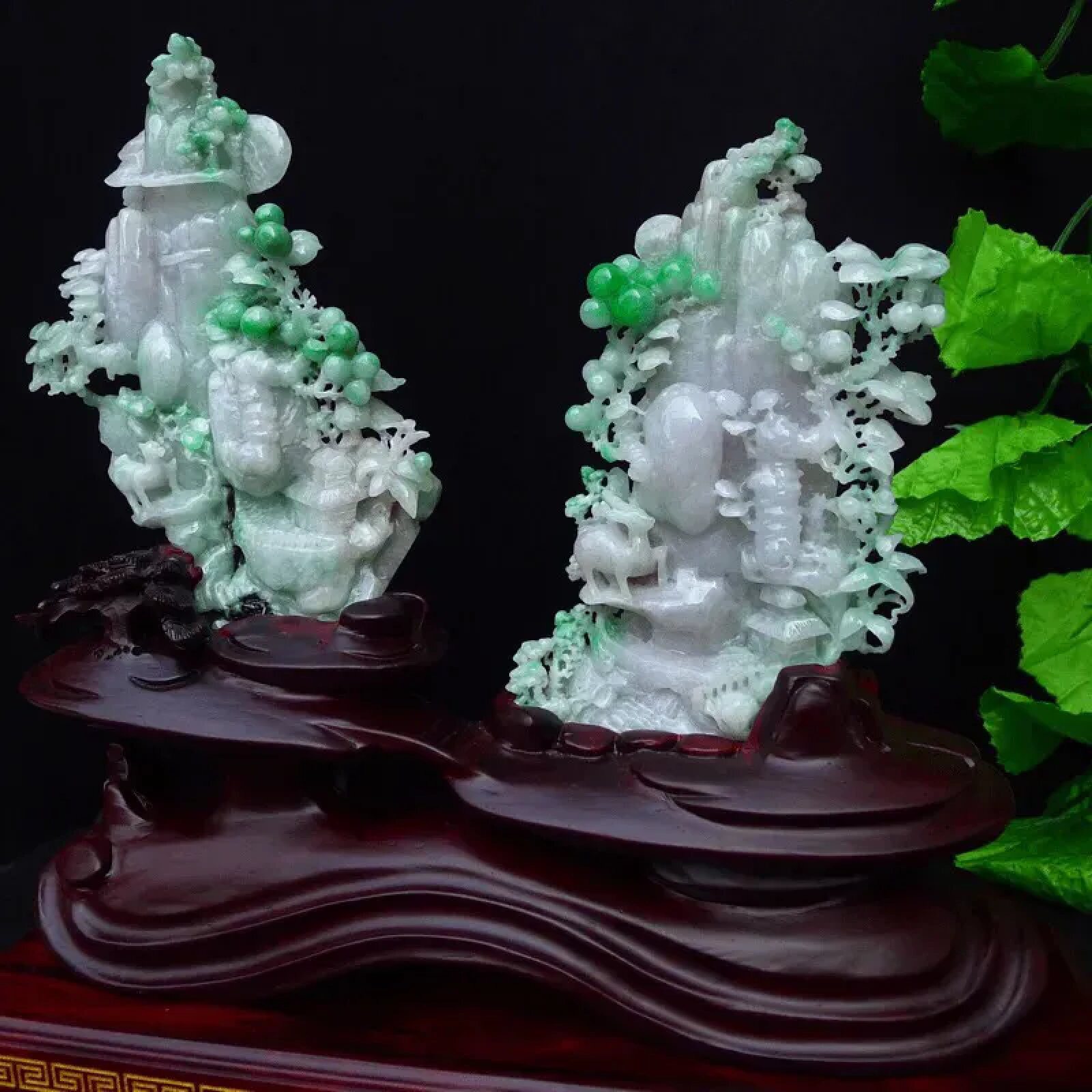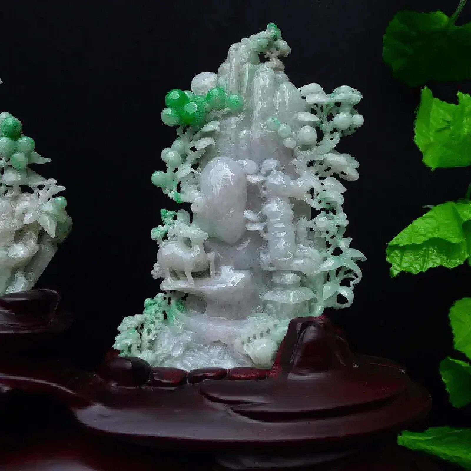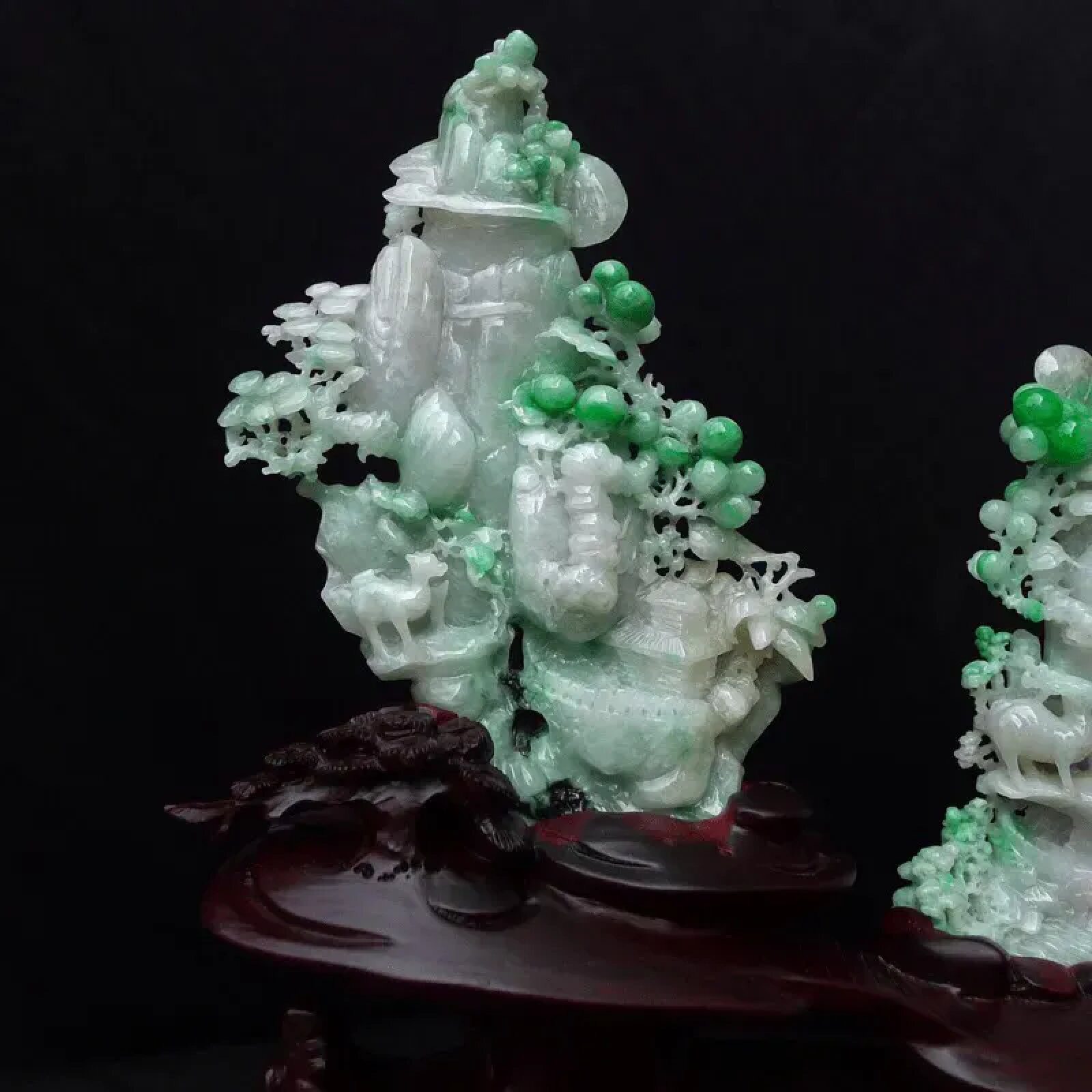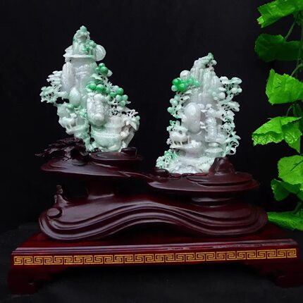 缅甸翡翠摆件精雕飘绿一路高升旭日东升精品山水摆饰橱柜0.54公斤