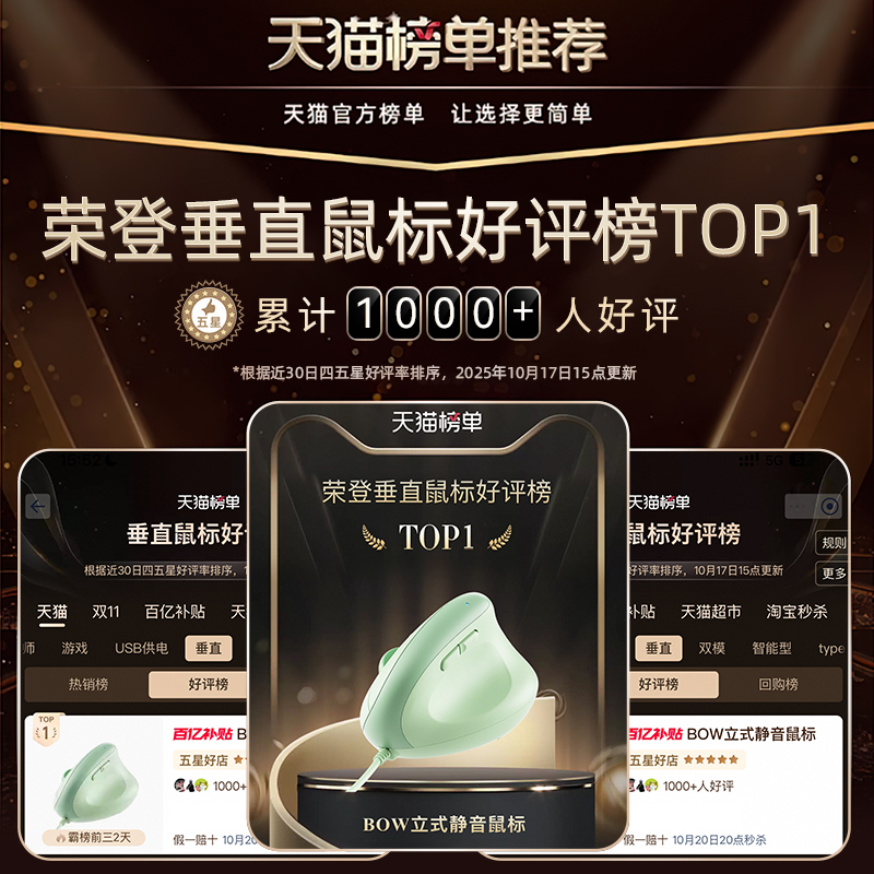 BOW航世笔记本人体工学有线鼠标垂直立式可爱女生USB电脑静音办公