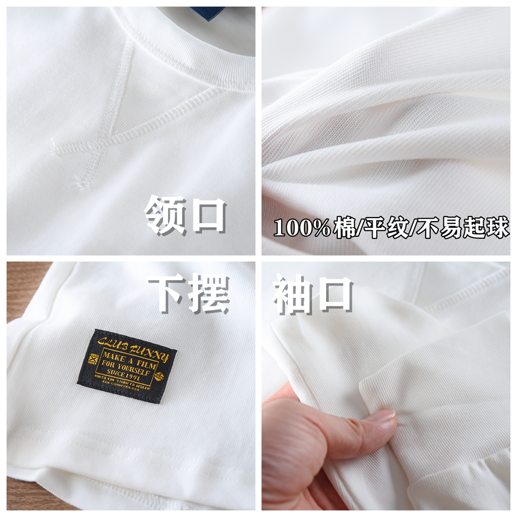 2024新美式280g重磅长袖t恤男春秋纯棉纯色白色打底衫圆领卫衣男