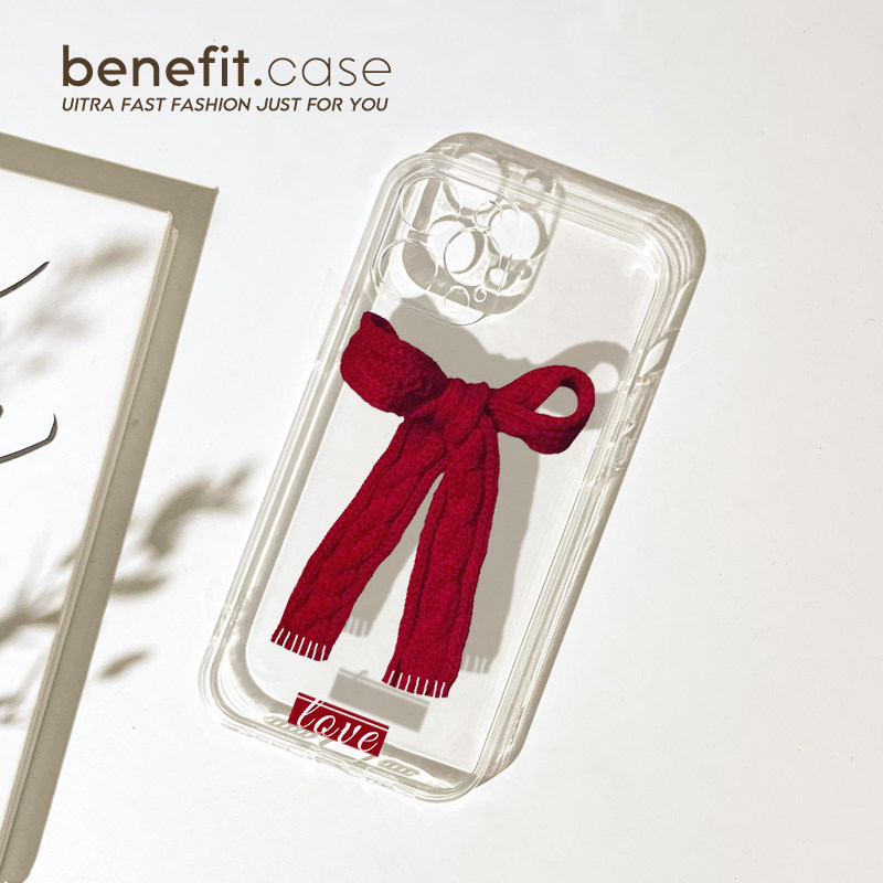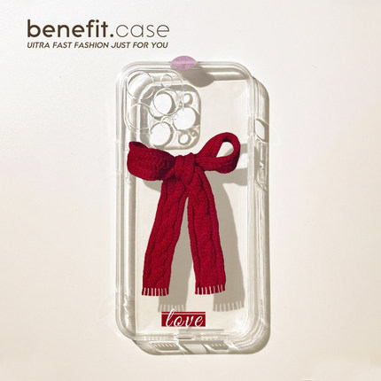 benefit红色蝴蝶结围巾17pro16适用iphone15promax苹果13手机壳14promax新款12套11新年xsmax透明xr硅胶8p7p