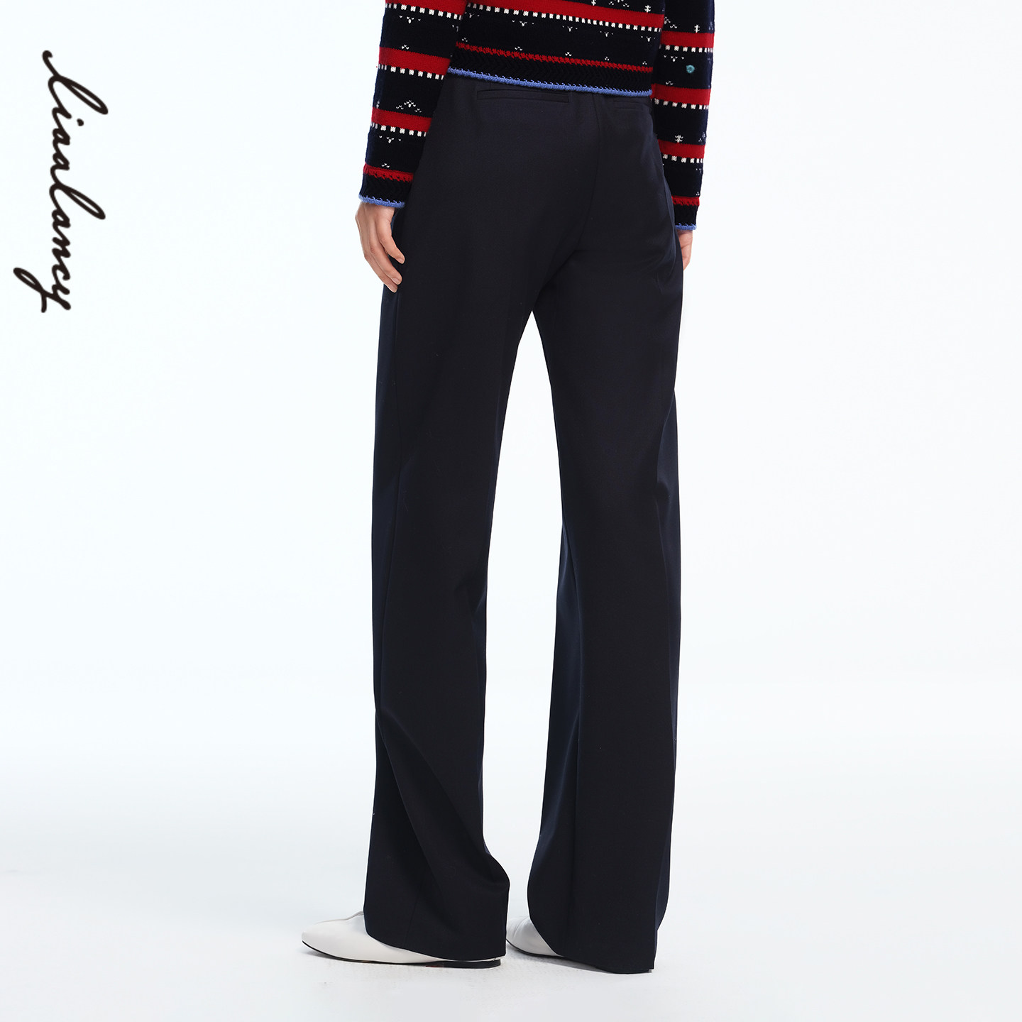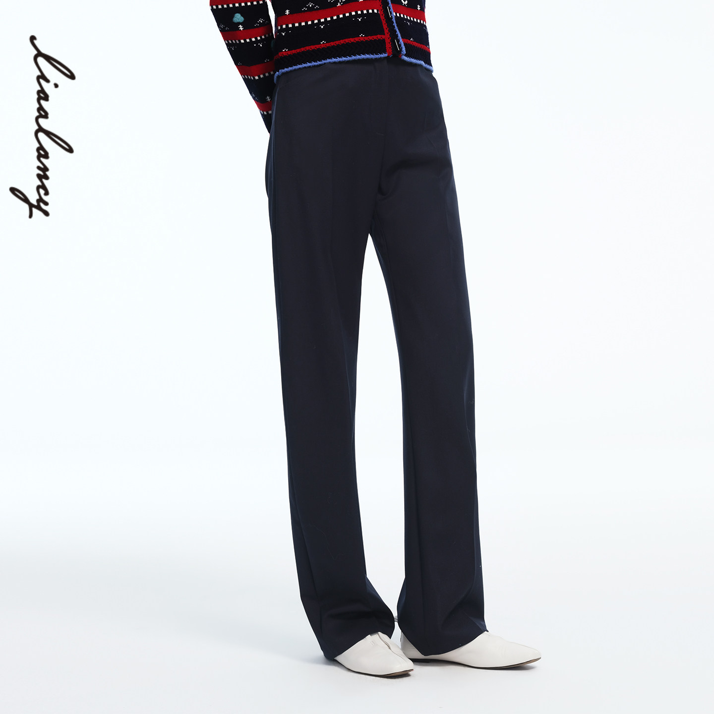 【马踏春风】LANCY/朗姿2026春季新款藏蓝羊毛商务直筒西装裤子