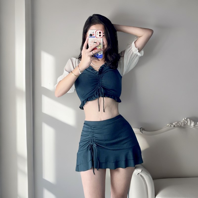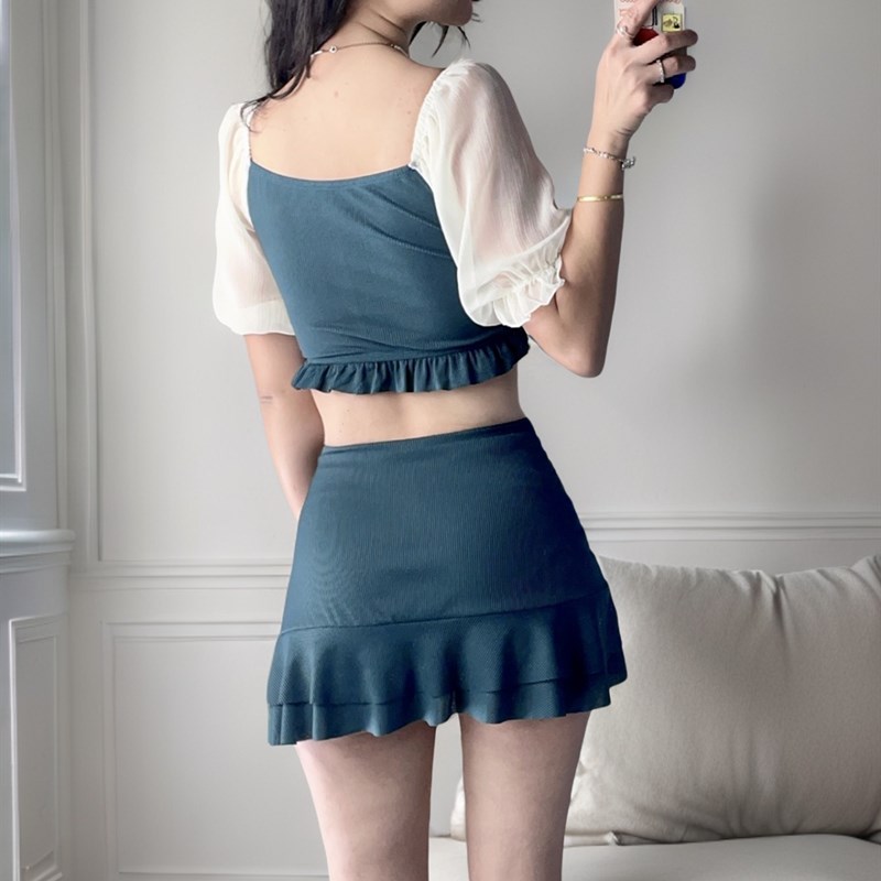 泳衣女裙式分体小个子少女小胸聚拢新款2025森系温泉度假显瘦泳装