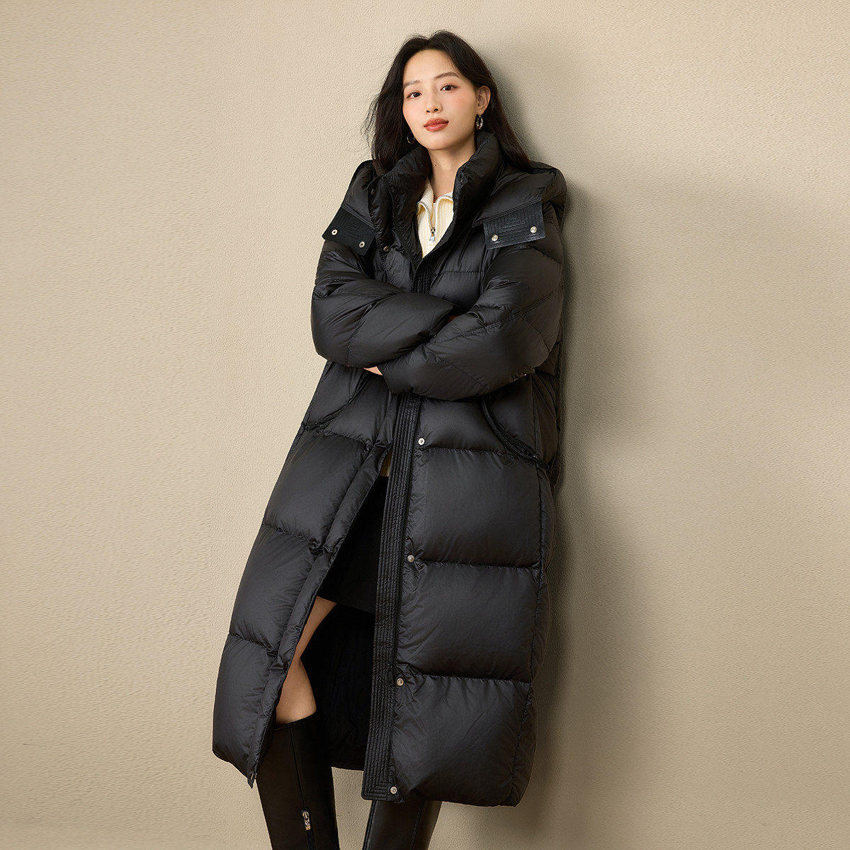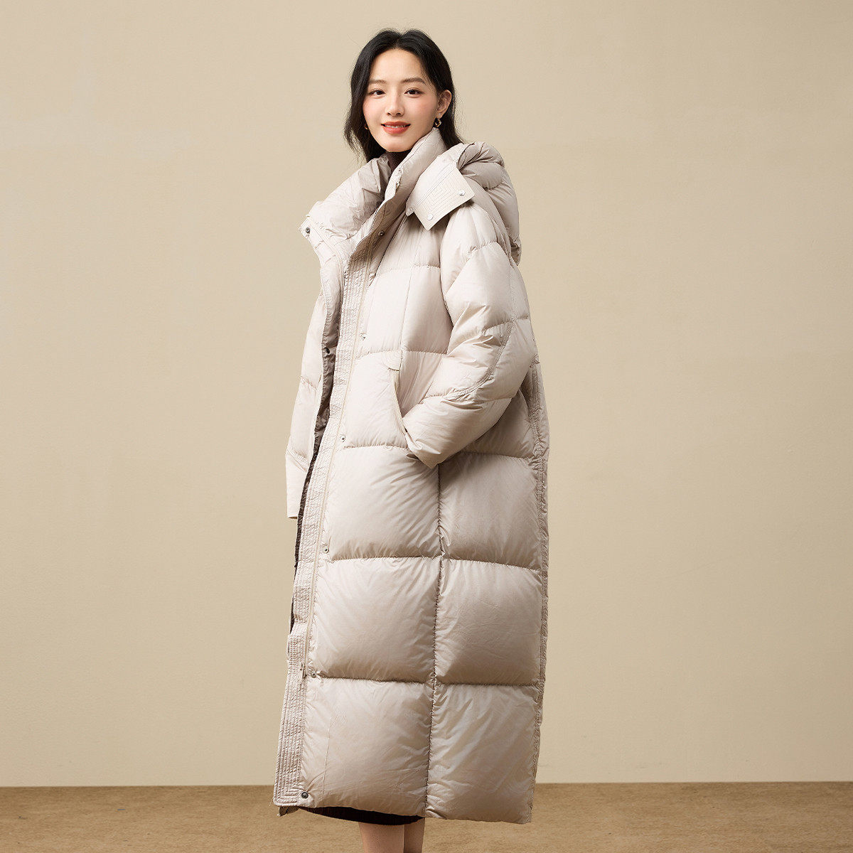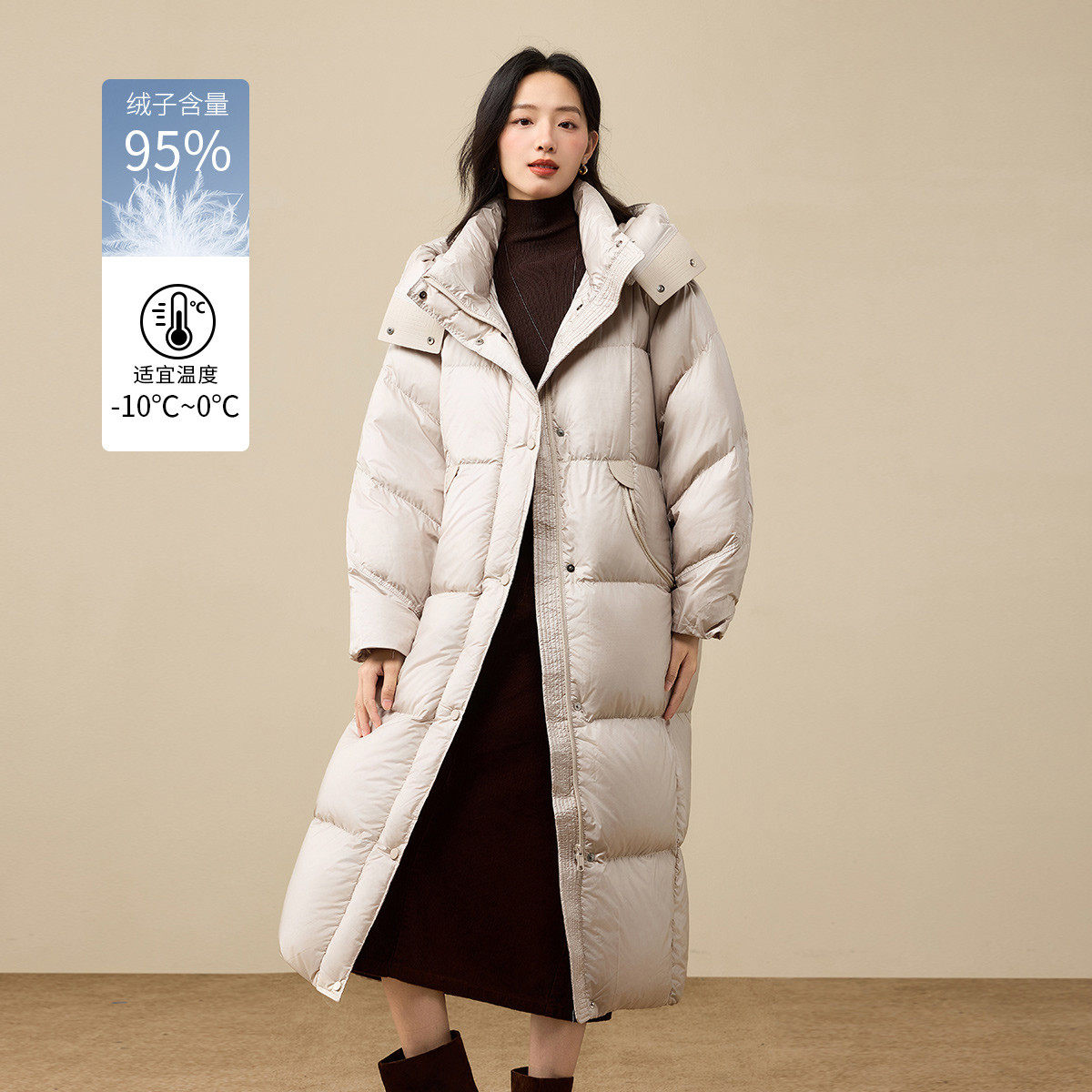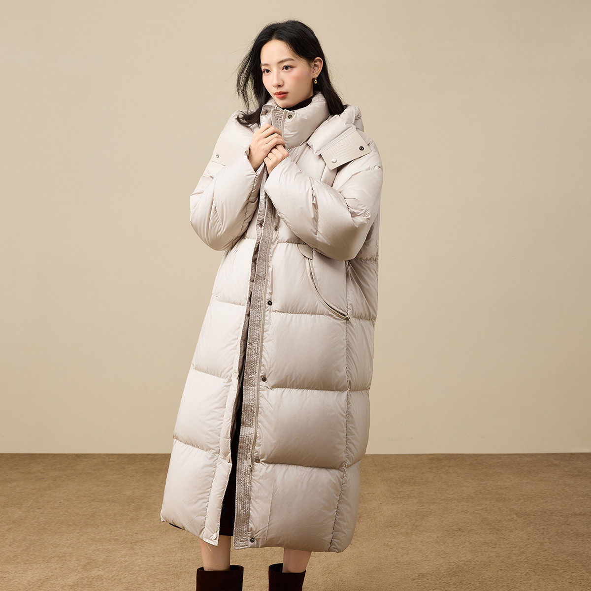 茵曼2025冬季新款加厚中长款鸭绒羽绒服女上衣宽松连帽外套面包服