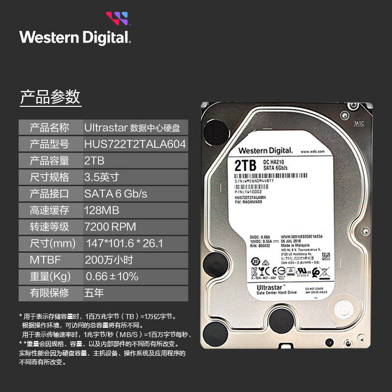 西部数据 WD 3.5英寸 SATA接口 台式机械硬盘2TB HUS722T2TALA604