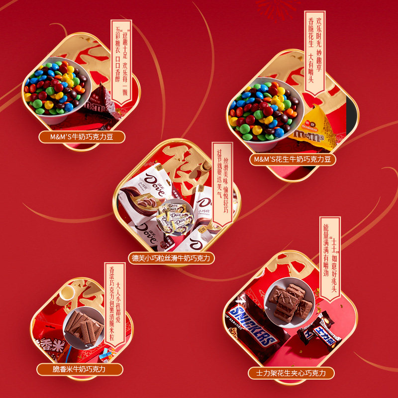 德芙巧克力礼盒884g7袋盒盒美美士力架m豆休闲零食小吃送礼物